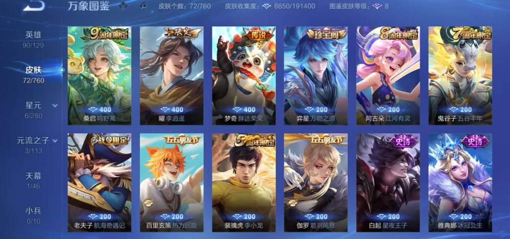 贵族等级: V5 英雄数: 120 皮肤数: 113 星传说: 幽冥火 传说皮