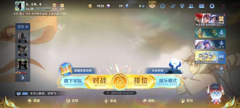 【排位信誉分89,打一把游戏可排位】贵族等级: V4 英雄数: 63 皮肤数: