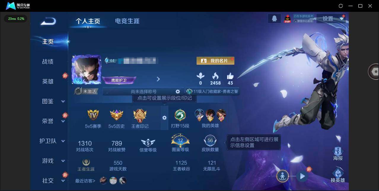 实名: 可修改 贵族等级: V4 英雄数: 125 皮肤数: 111 传说皮:
