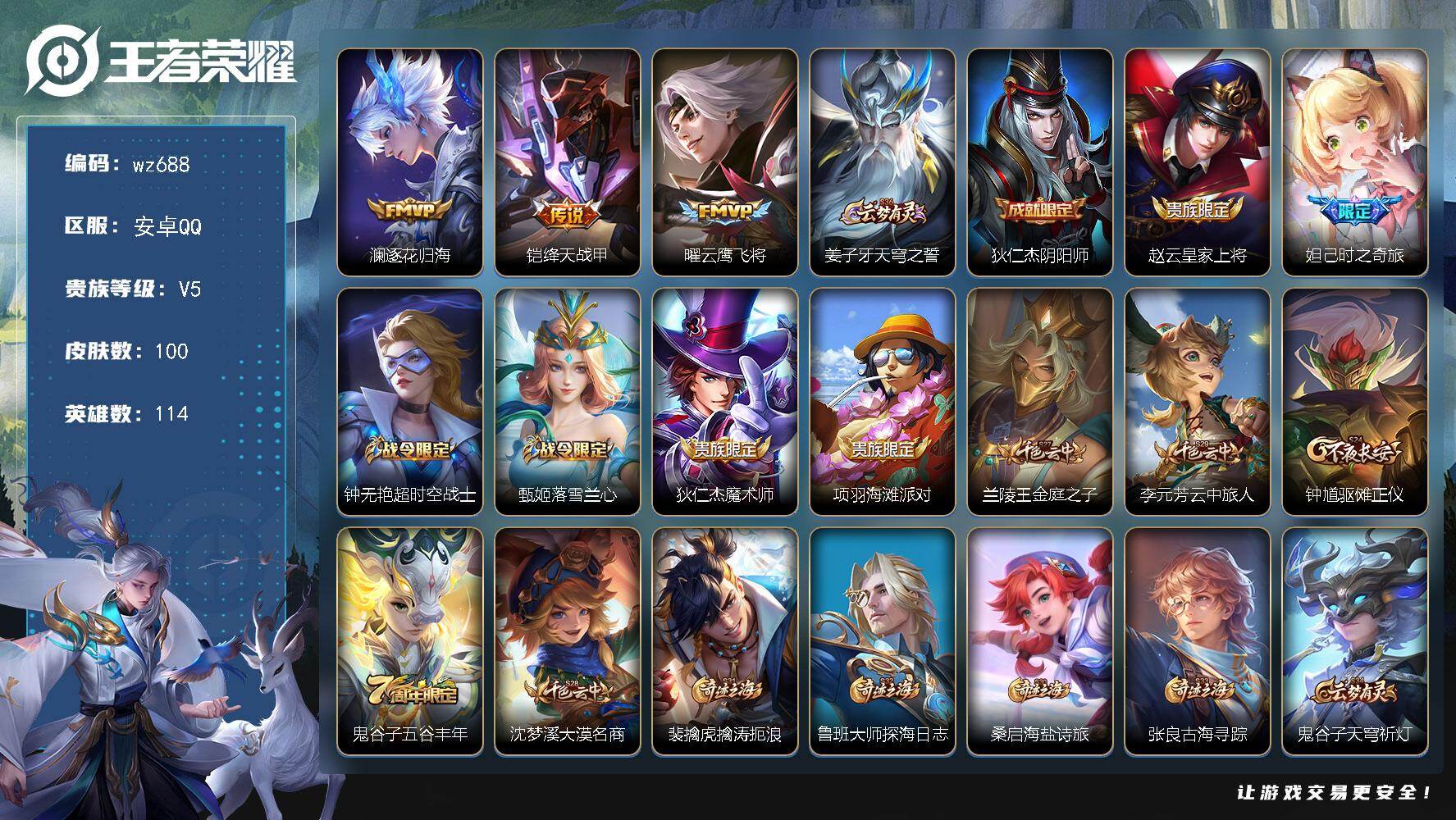 安卓Q-V0-至尊星耀IV段位-100英雄-86皮肤-18史诗【限定皮肤】: