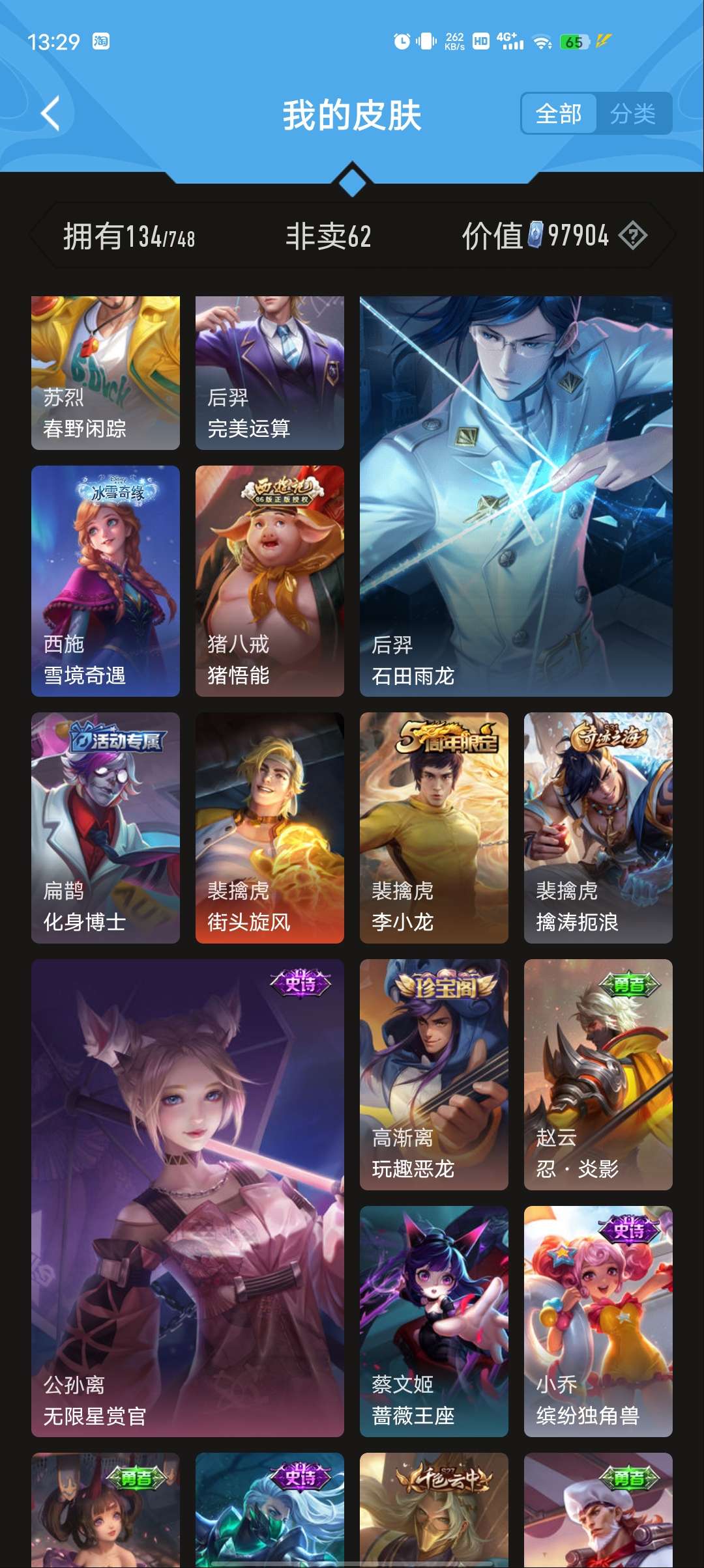 【W4205】安卓Q区-可二次-贵4-123英雄-117皮肤-5传说-25史诗