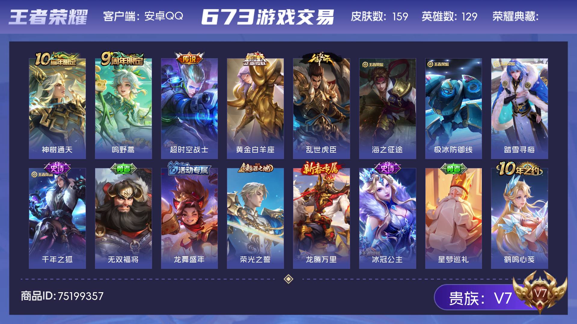 V7 皮肤159 英雄129 尊贵铂金 传说4 其他皮肤161