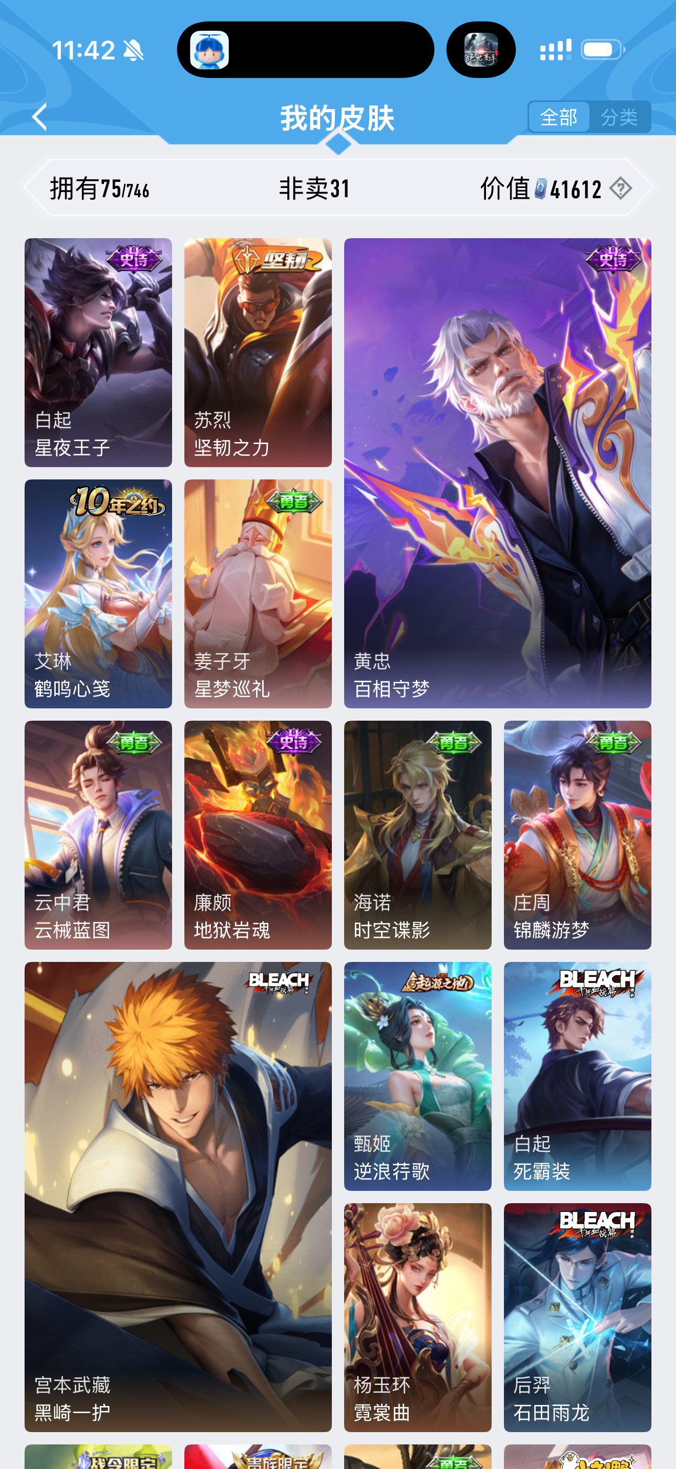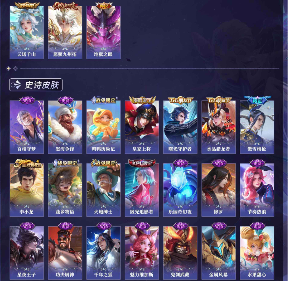 皮肤171 英雄122 至尊星耀 传说2 其他皮肤48-