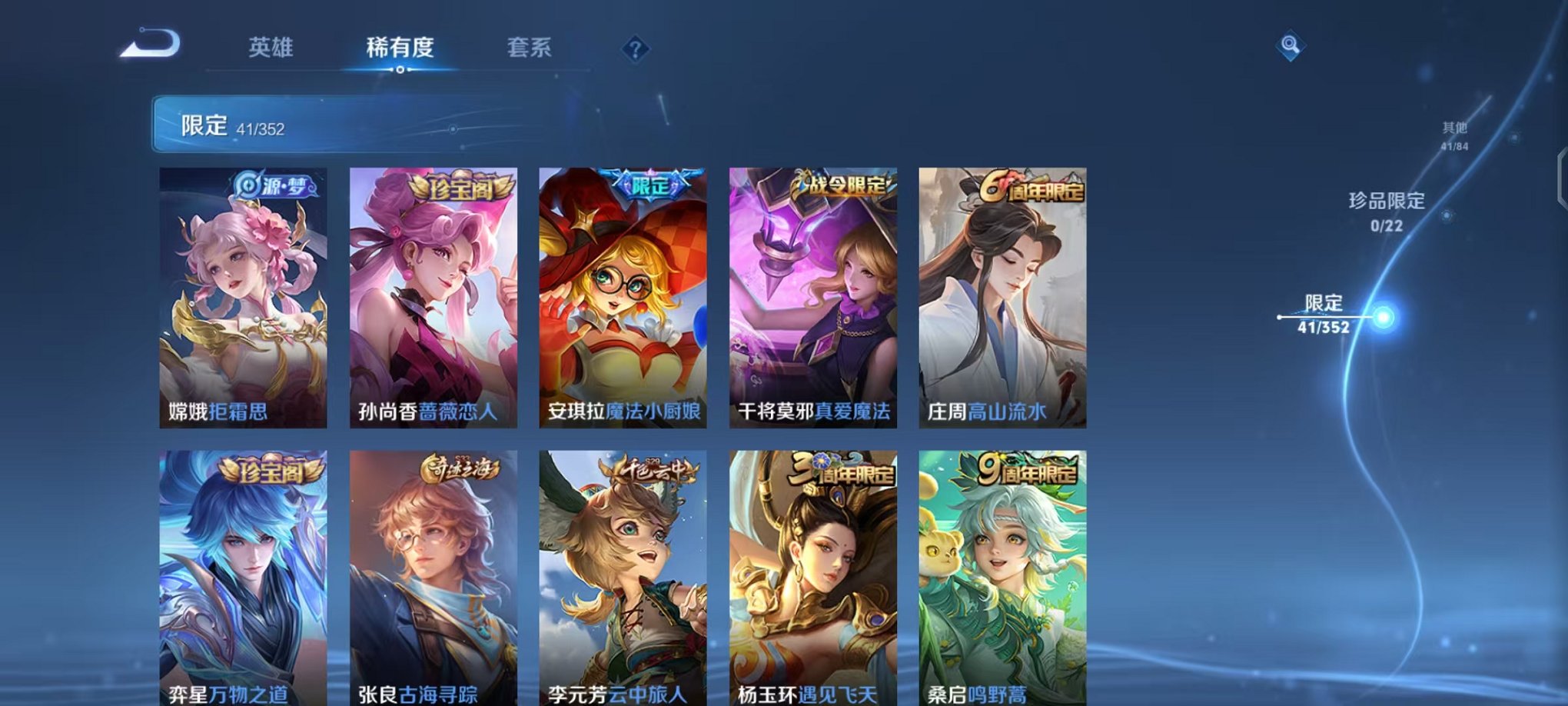 小号 有马超神威 孙尚香异界灵契 李信兔年限定和一年神魔 还有好几个史诗