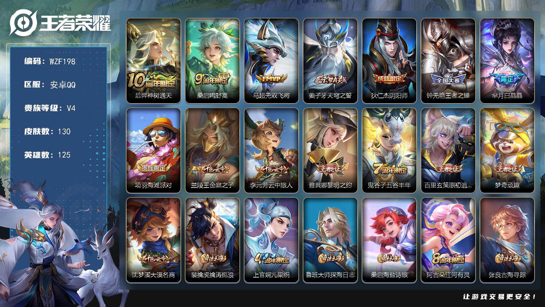 【W4539】安卓QQ-有二次-贵6-124英雄-129皮肤-5传说-36限定