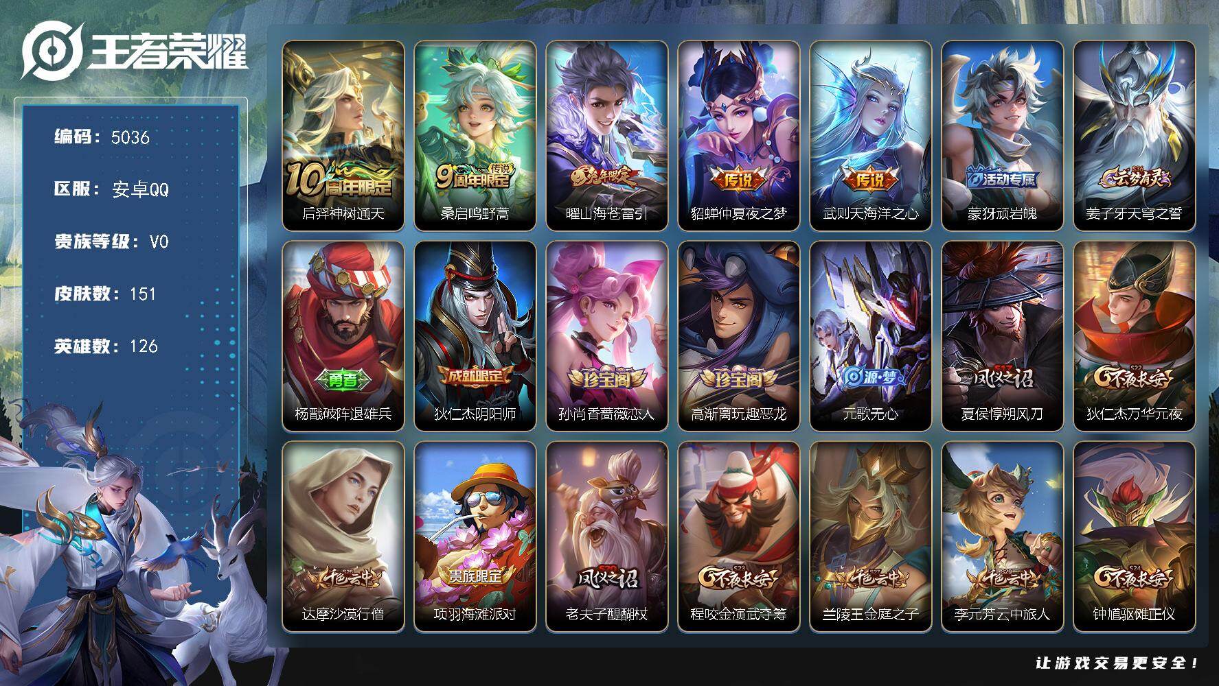 贵族4-151皮0典藏5传说 安卓手Q315区151皮0典藏5传说0无双V