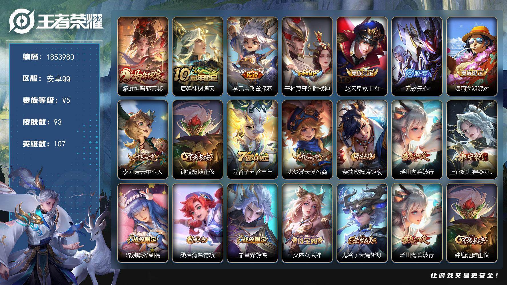 2618504 王者荣耀账号 安卓Q-V6-荣耀黄金III段位-93英雄-73
