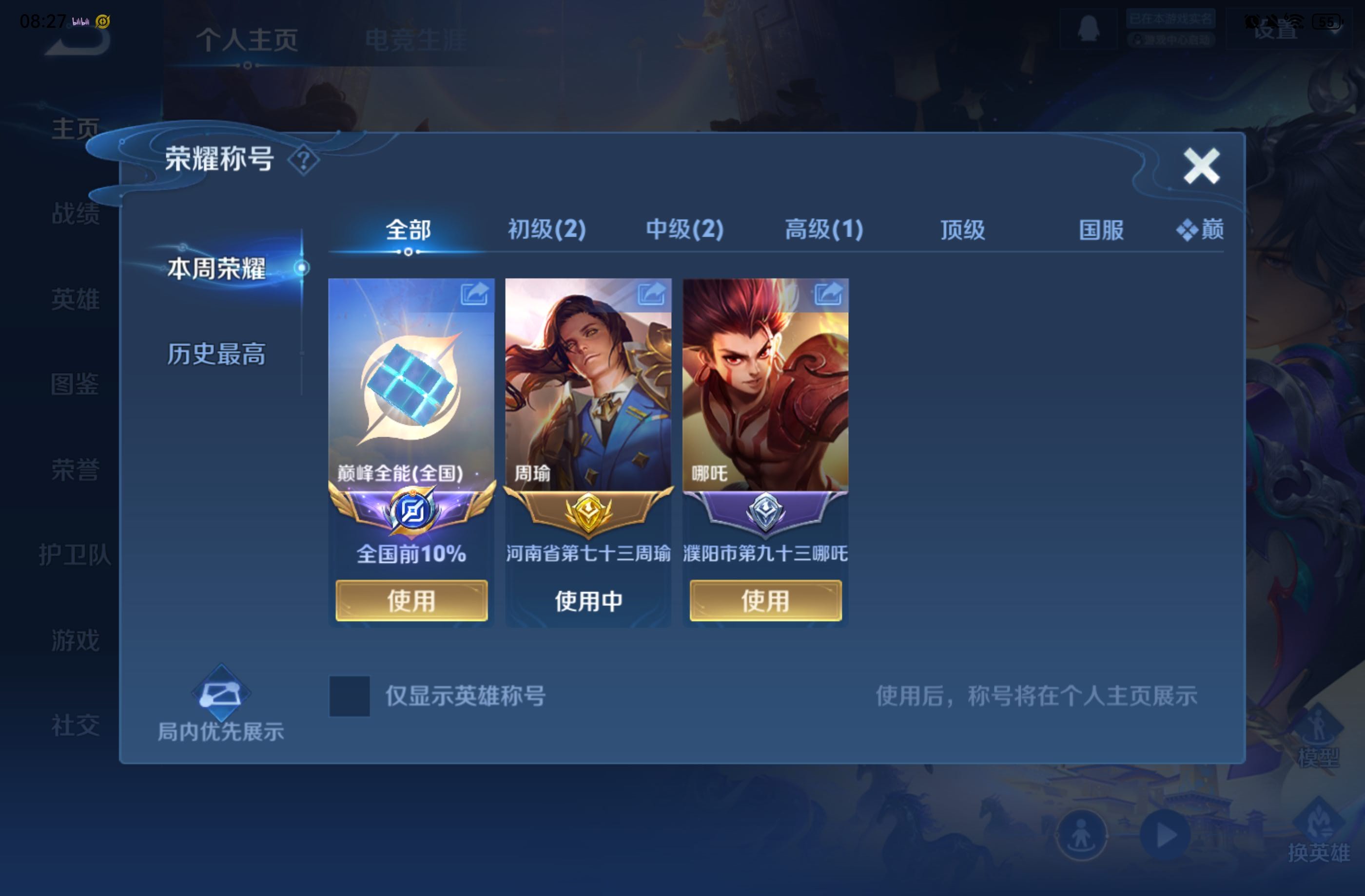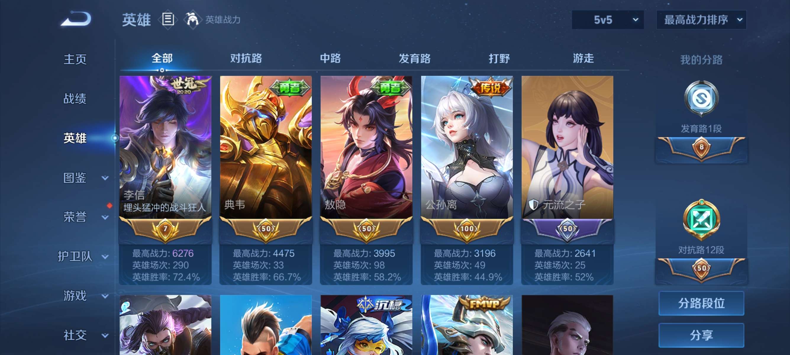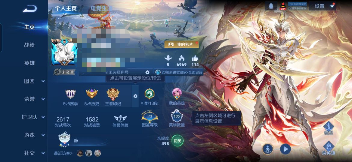 贵族等级: V6 英雄数: 127 皮肤数: 125 星传说: 幽冥火 传说皮