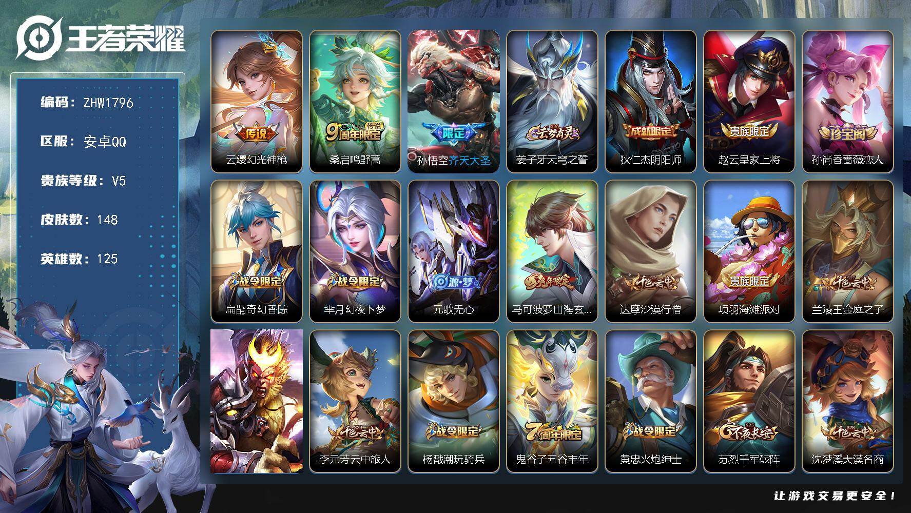 V5-永恒钻石IV段位-125英雄-148皮肤-3传说-37史诗