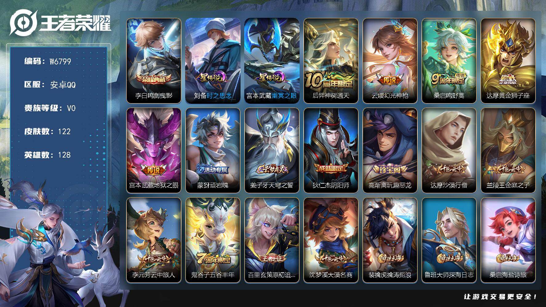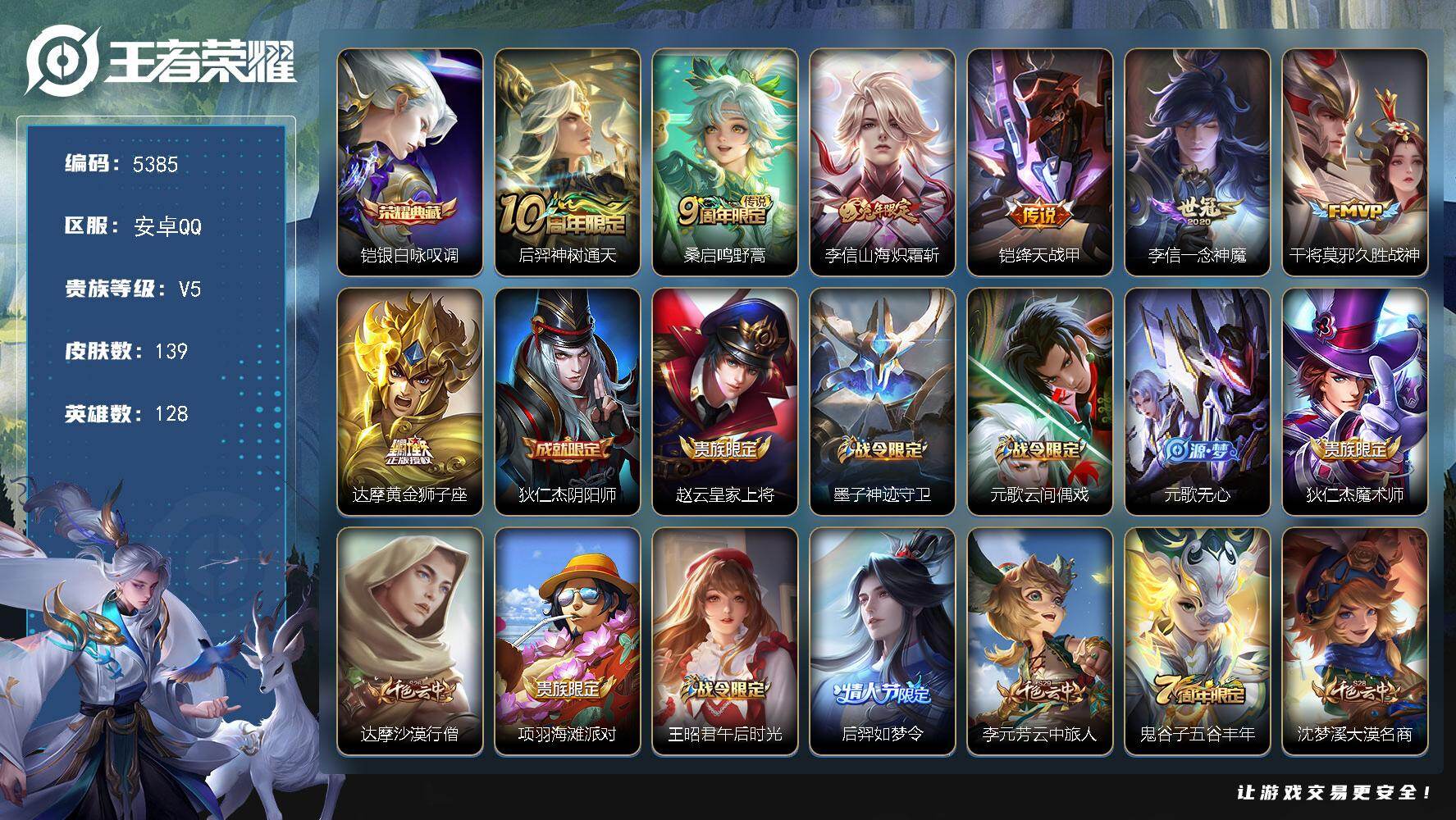安卓Q-V5-最强王者段位-128英雄-139皮肤-1典藏皮肤-7传说-39史