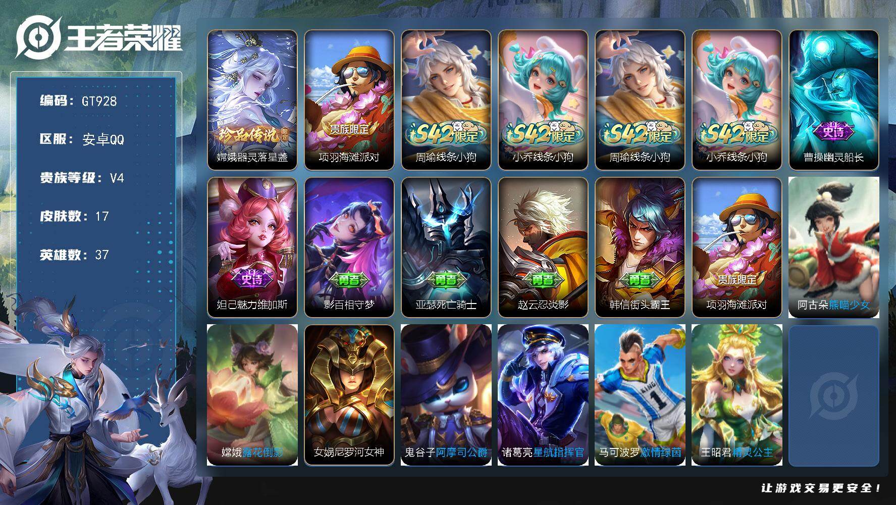 【金标貂蝉】【鸡年限定全套】实名: 可修改 贵族等级: V6 英雄数: 120