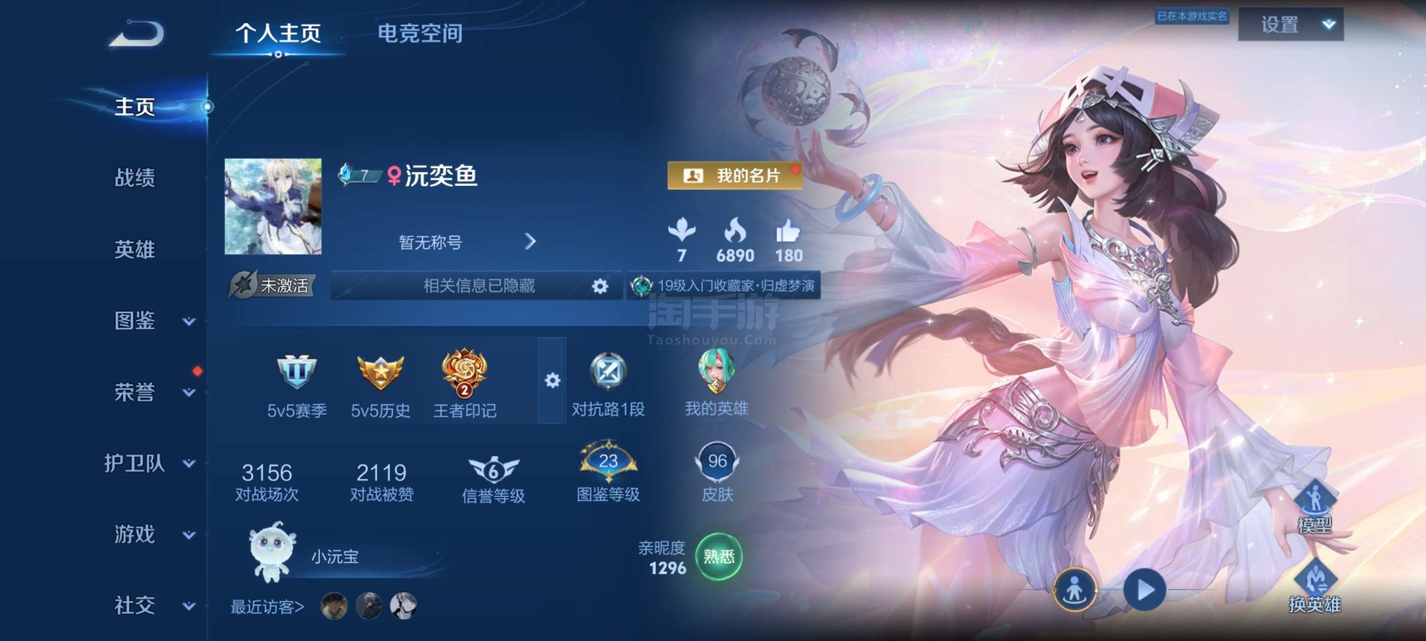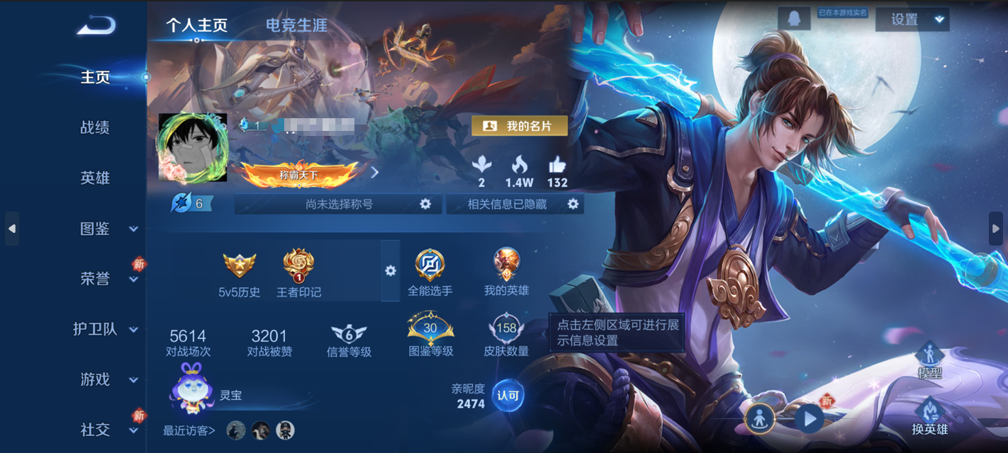 实名: 可修改 贵族等级: V5 英雄数: 109 皮肤数: 90 传说皮: