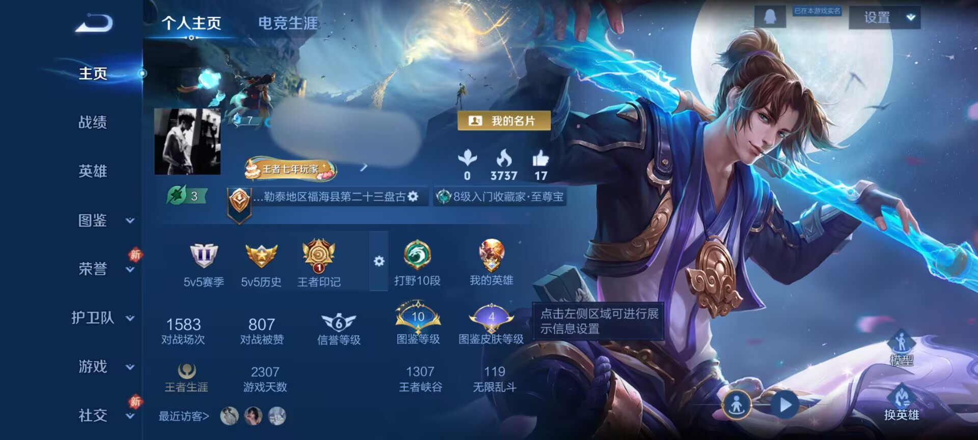 贵族等级: V4 英雄数: 38 皮肤数: 11 传说皮: 无双飞将,澜逐花归海