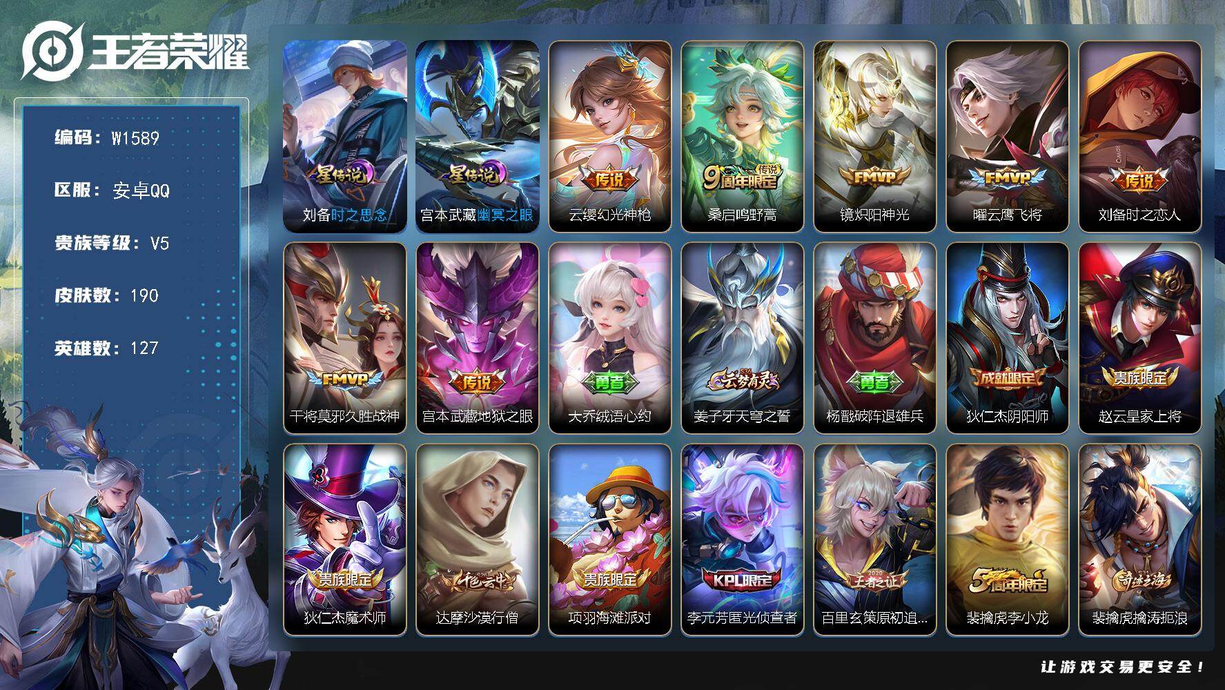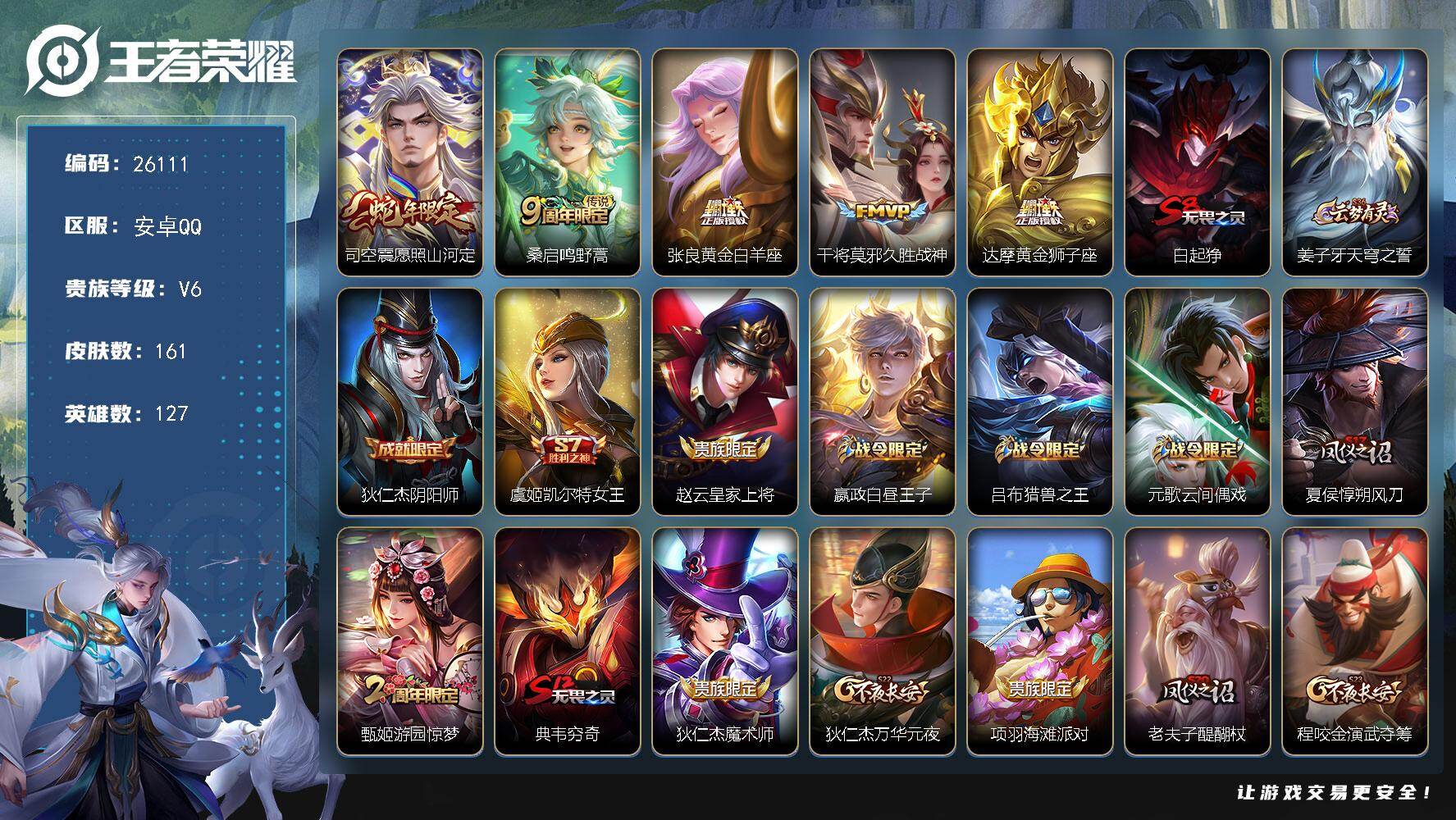 安卓Q-V3-永恒钻石IV段位-127英雄-175皮肤-1典藏皮肤-1传说-2