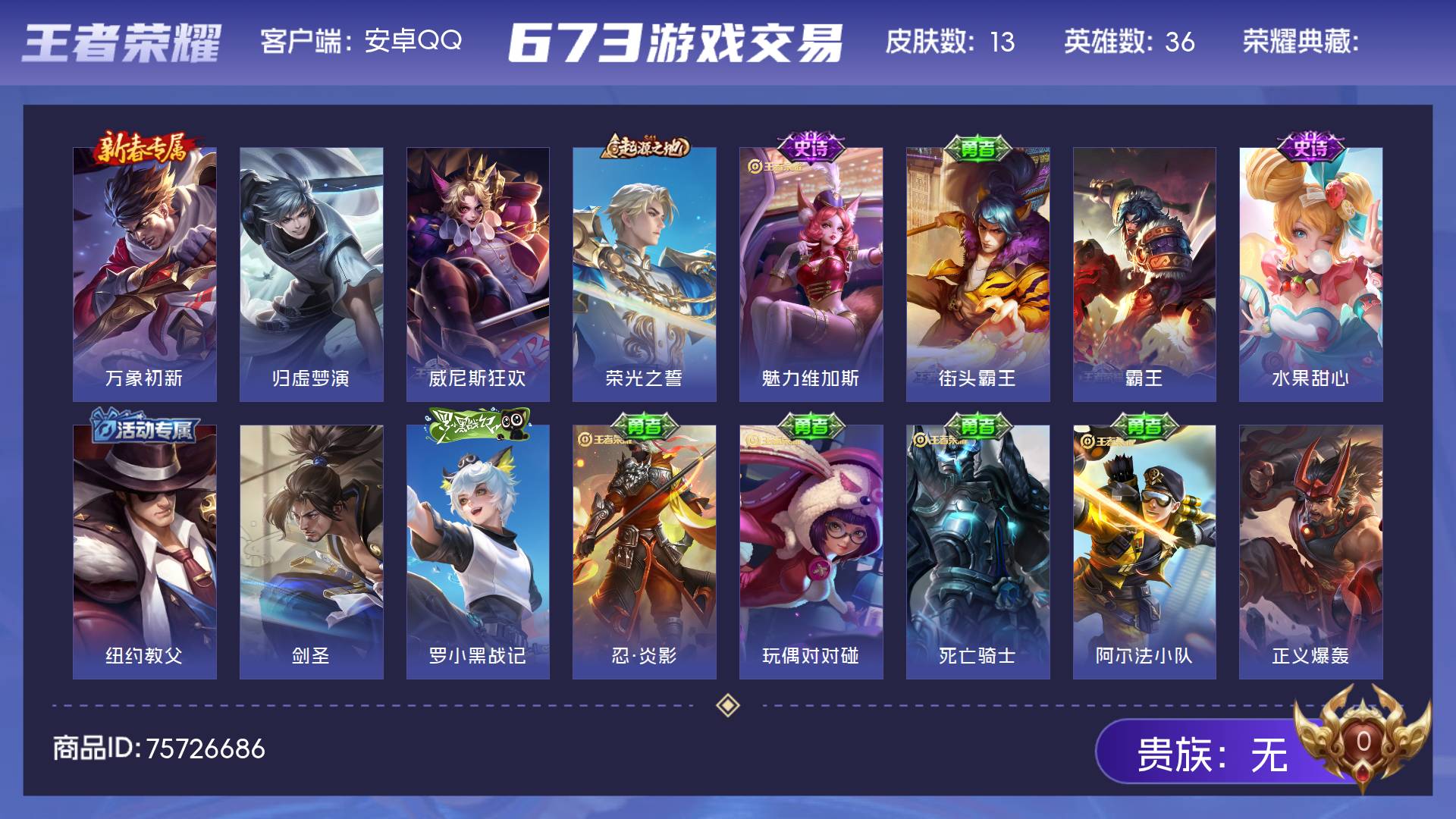 皮肤13 英雄36 至尊星耀 其他皮肤16