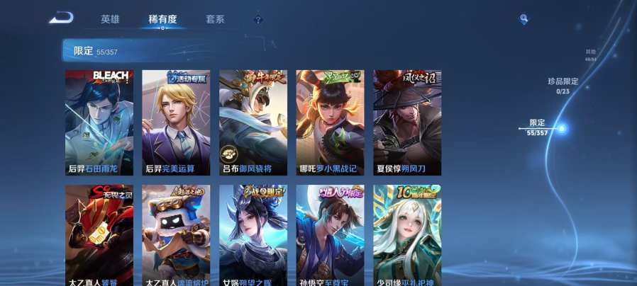 实名: 可修改 贵族等级: V3 英雄数: 125 皮肤数: 79 传说皮: