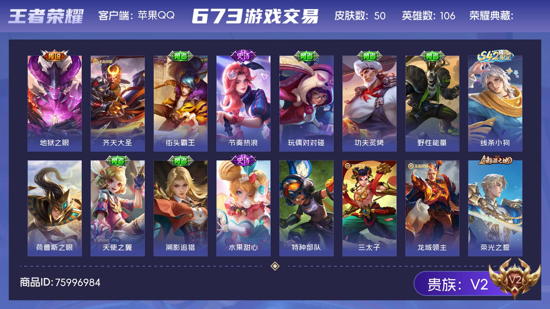 V2 皮肤50 英雄106 无双王者 传说2 其他皮肤55