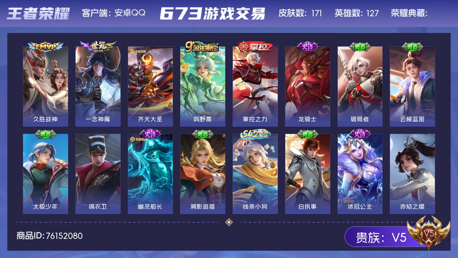 安卓QQ-6传说-167皮肤-124英雄-真心出,欢迎报价,米合适马上对接