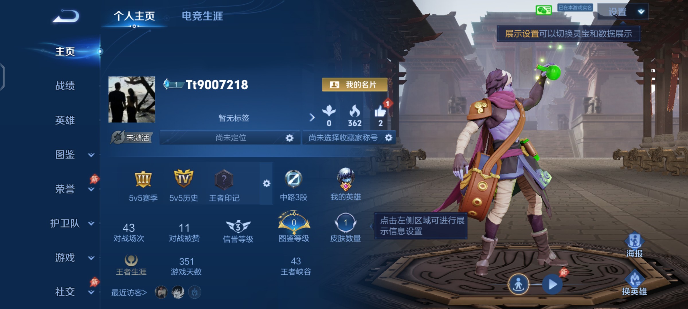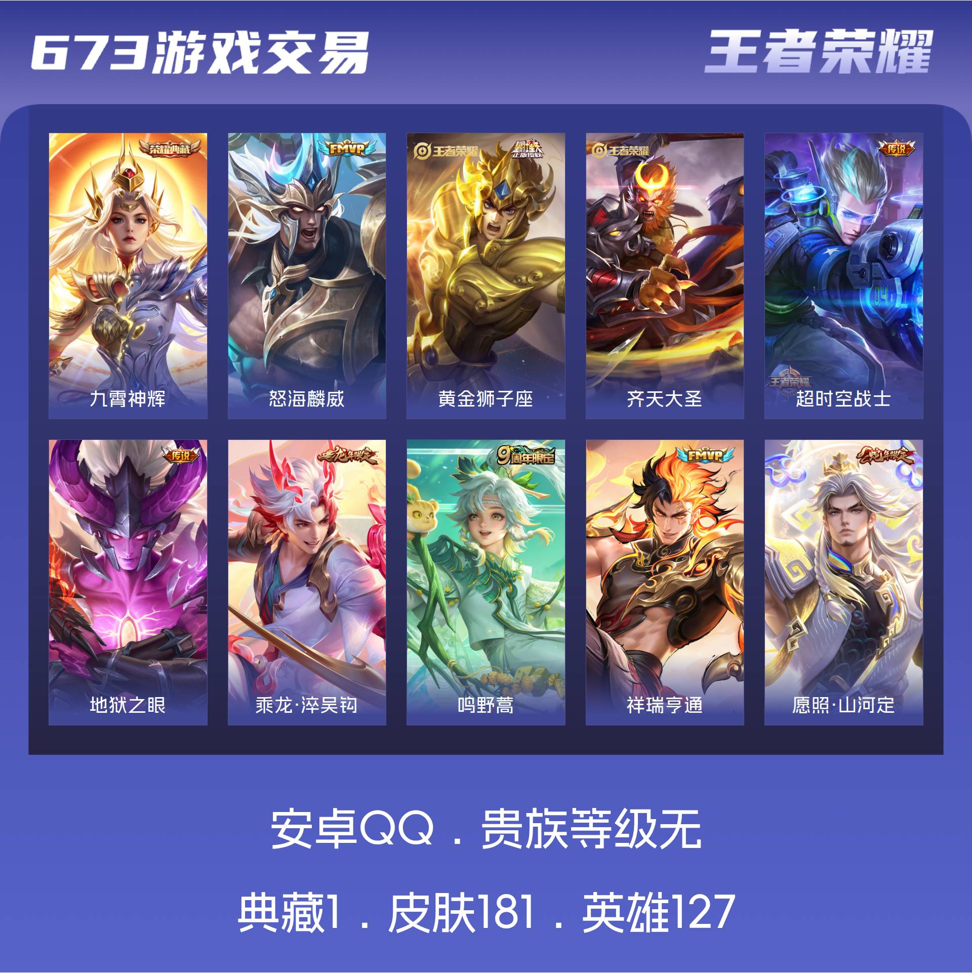 实名: 可修改 贵族等级: V5 英雄数: 125 皮肤数: 160 星传说: