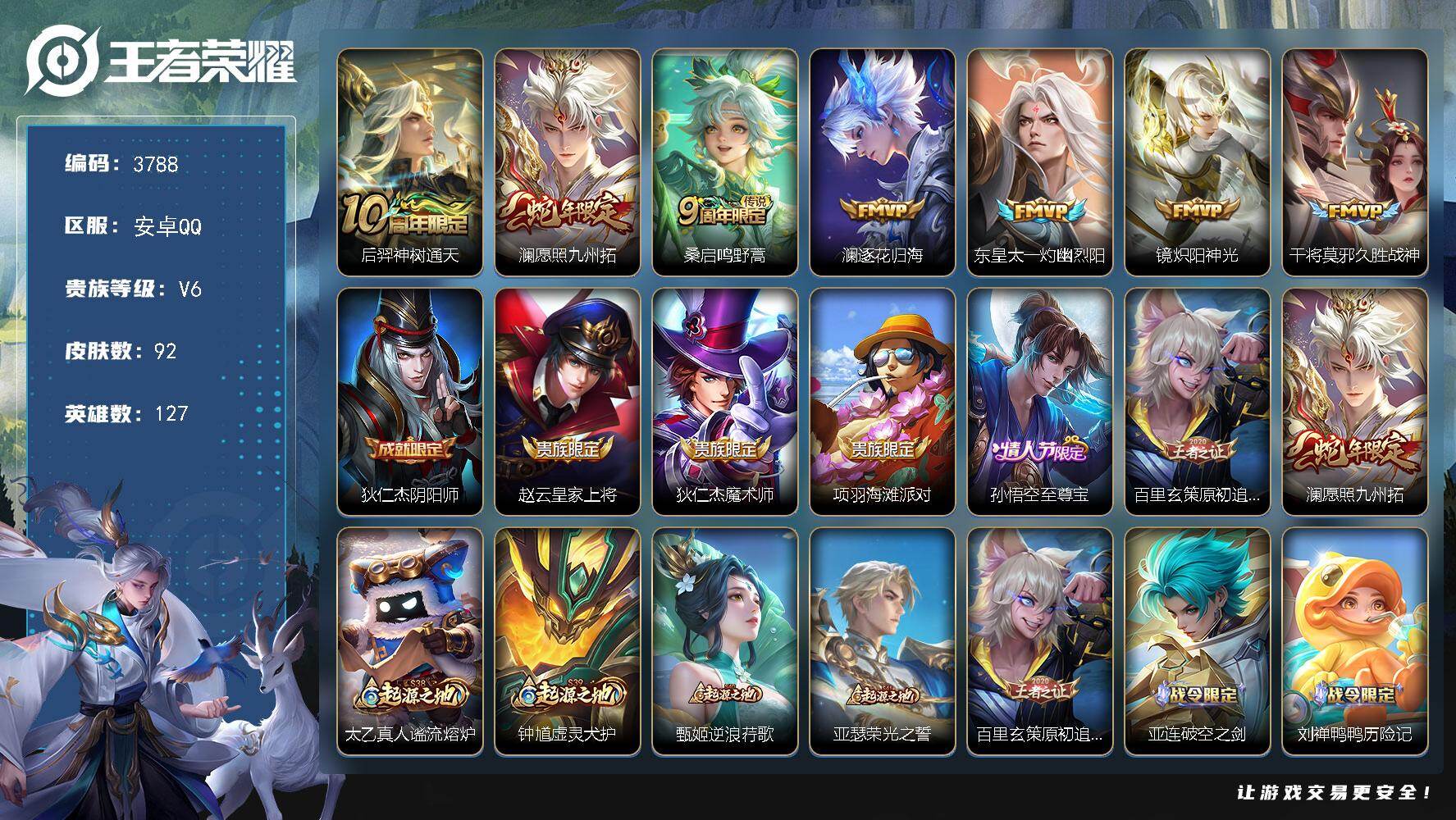 【16776358】安卓Q-V0-至尊星耀I段位-113英雄-117皮肤-3传