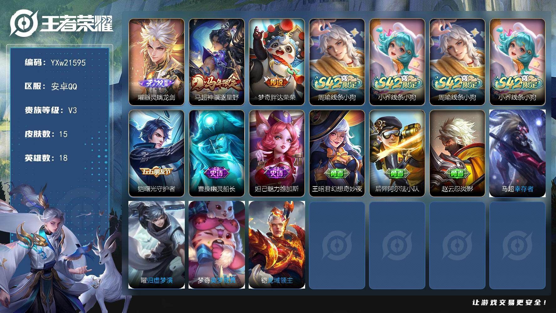 【16776358】安卓Q-V0-至尊星耀I段位-113英雄-117皮肤-3传
