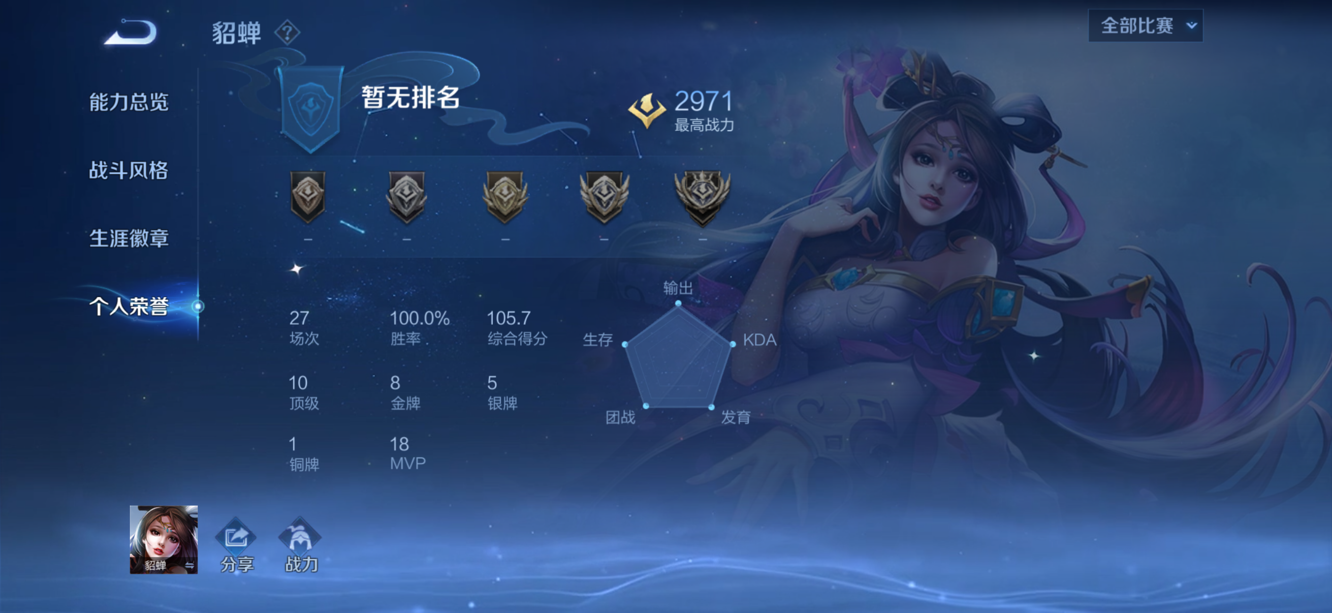 百胜百评107评分貂蝉,输了一把,可冲王者