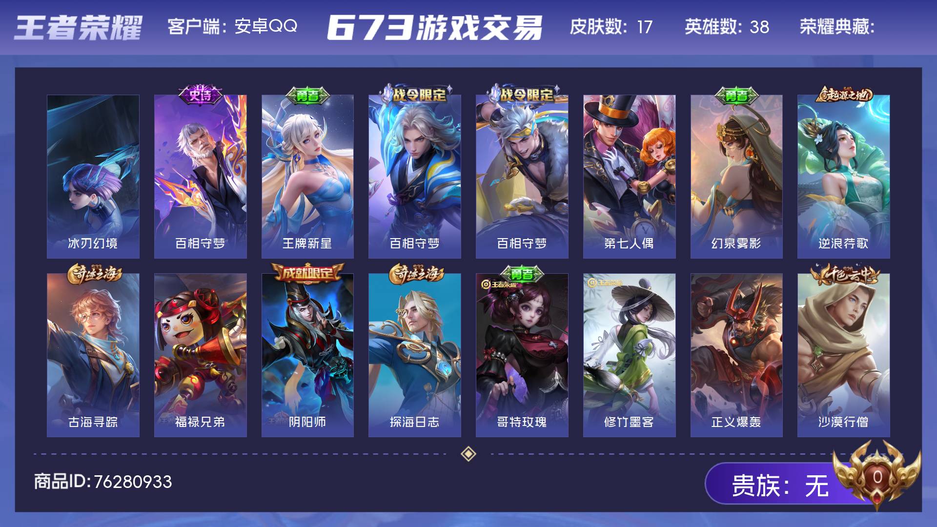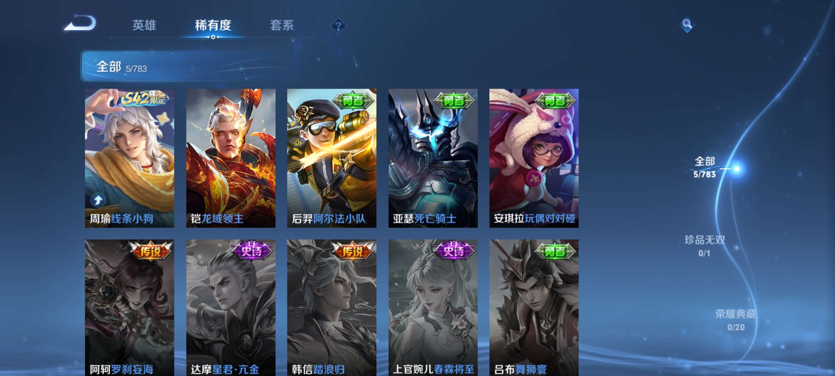 皮肤17 英雄38 至尊星耀