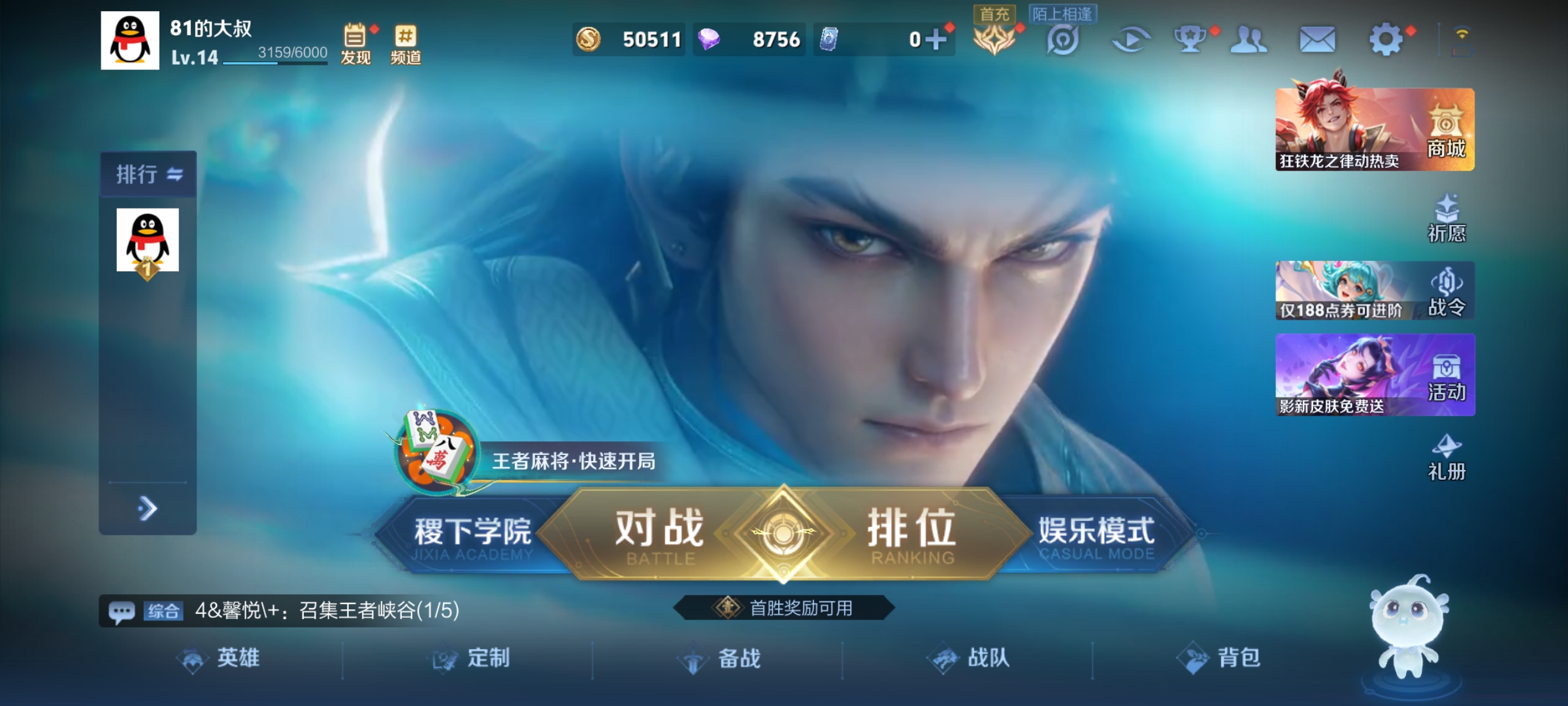 王者nb号小白号可以练英雄一个月亮先到先得