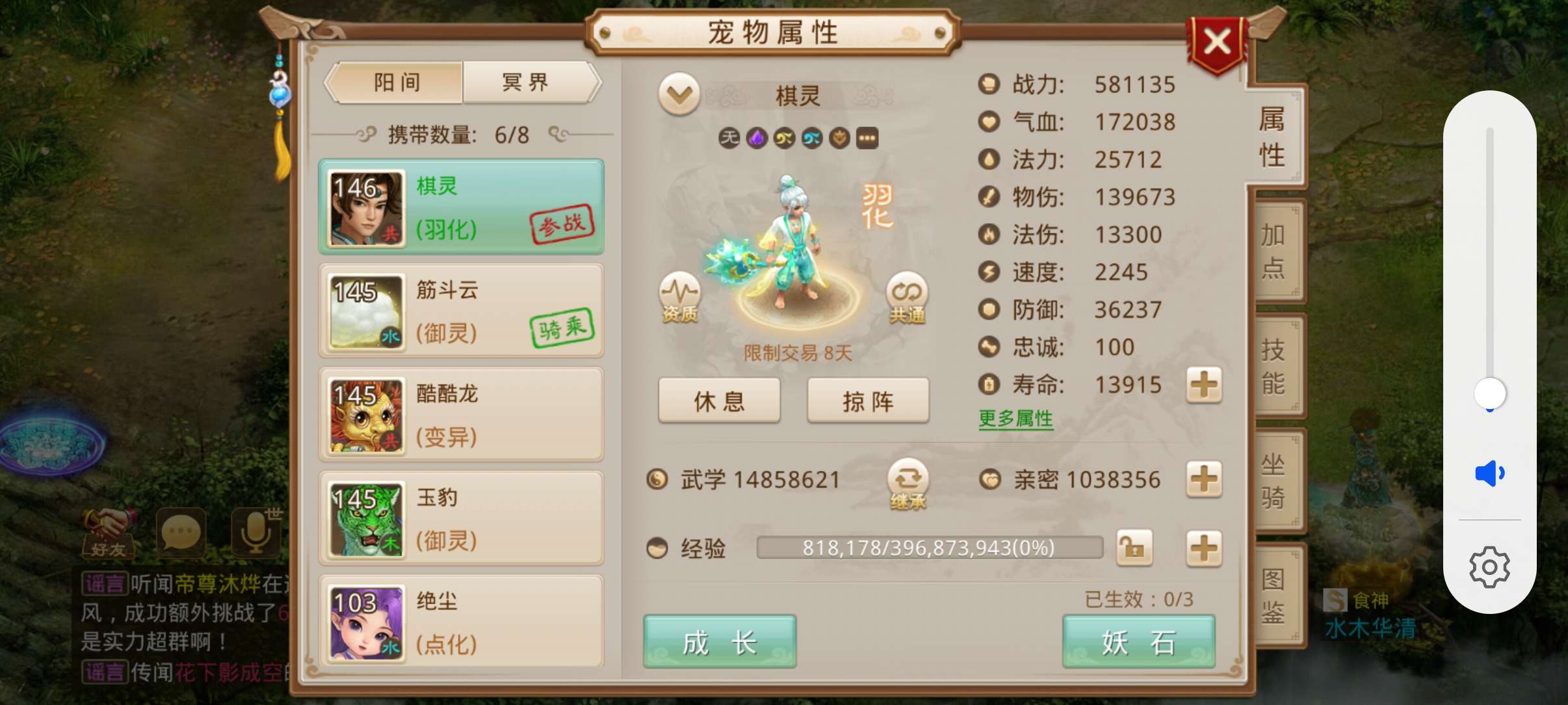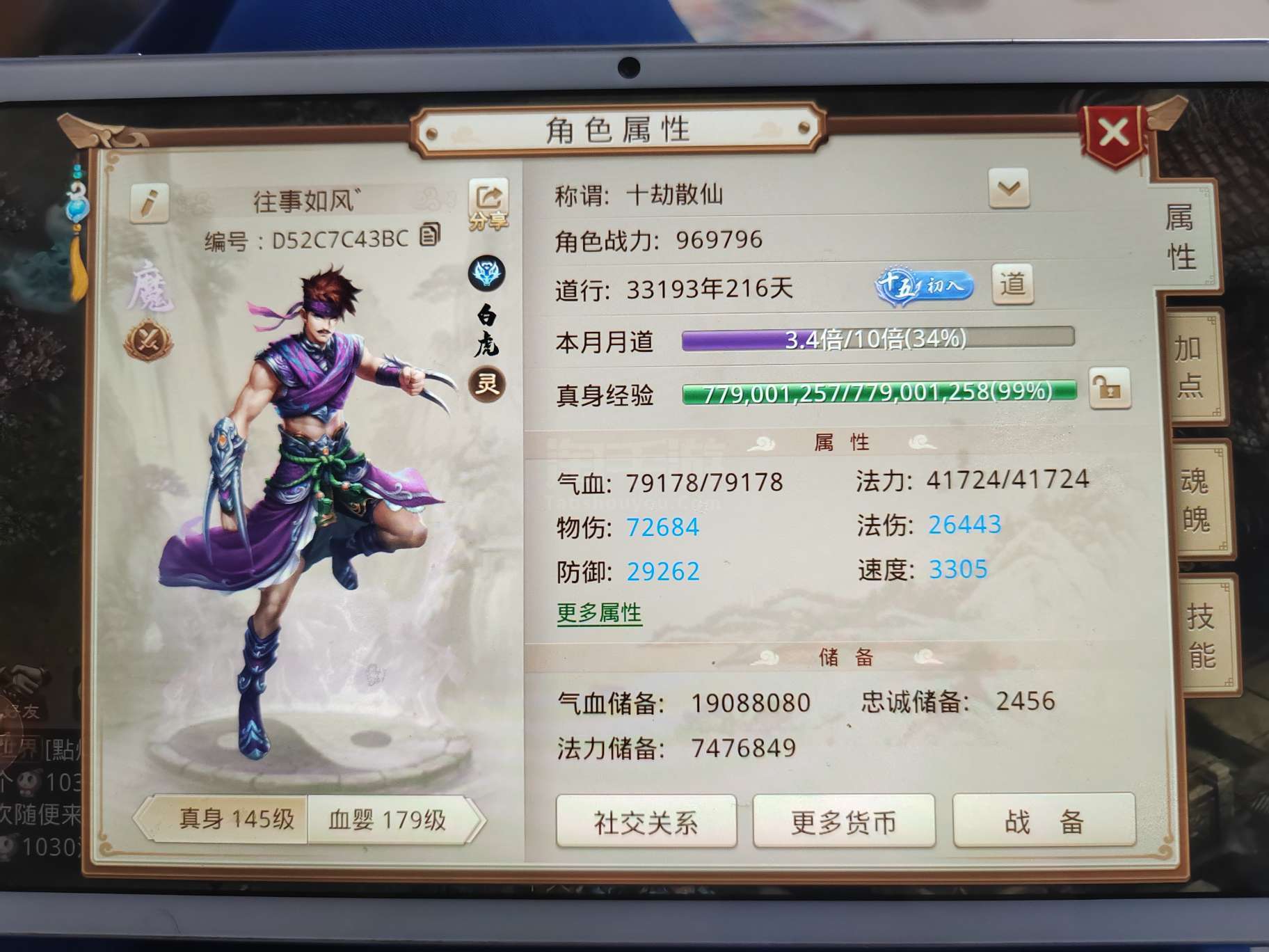 极品账号出售 宠物成长850,输出能力强,角色属性为,体木,气血72000,法力26000防御32000排行榜29