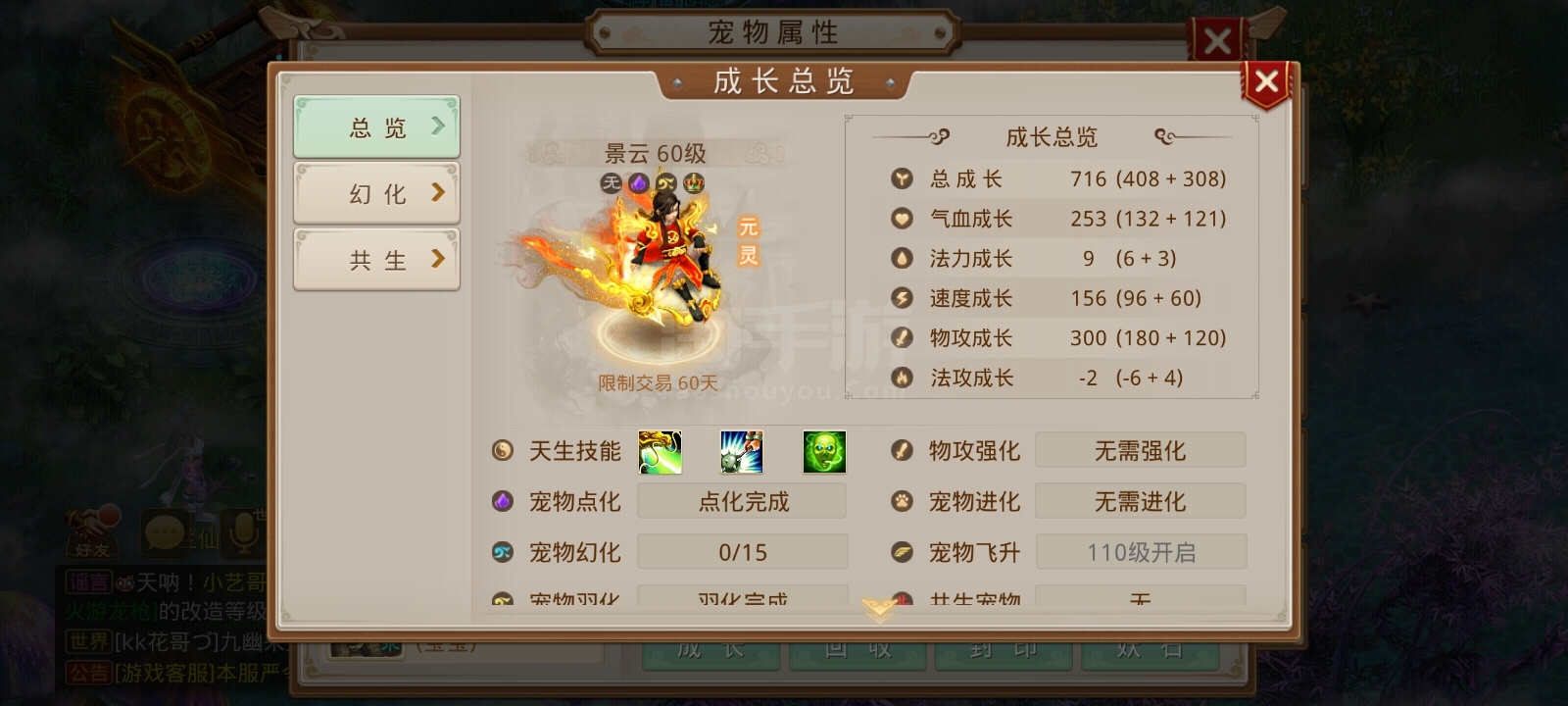 极品账号出售 宠物成长850,输出能力强,角色属性为,体木,气血72000,法力26000防御32000排行榜29