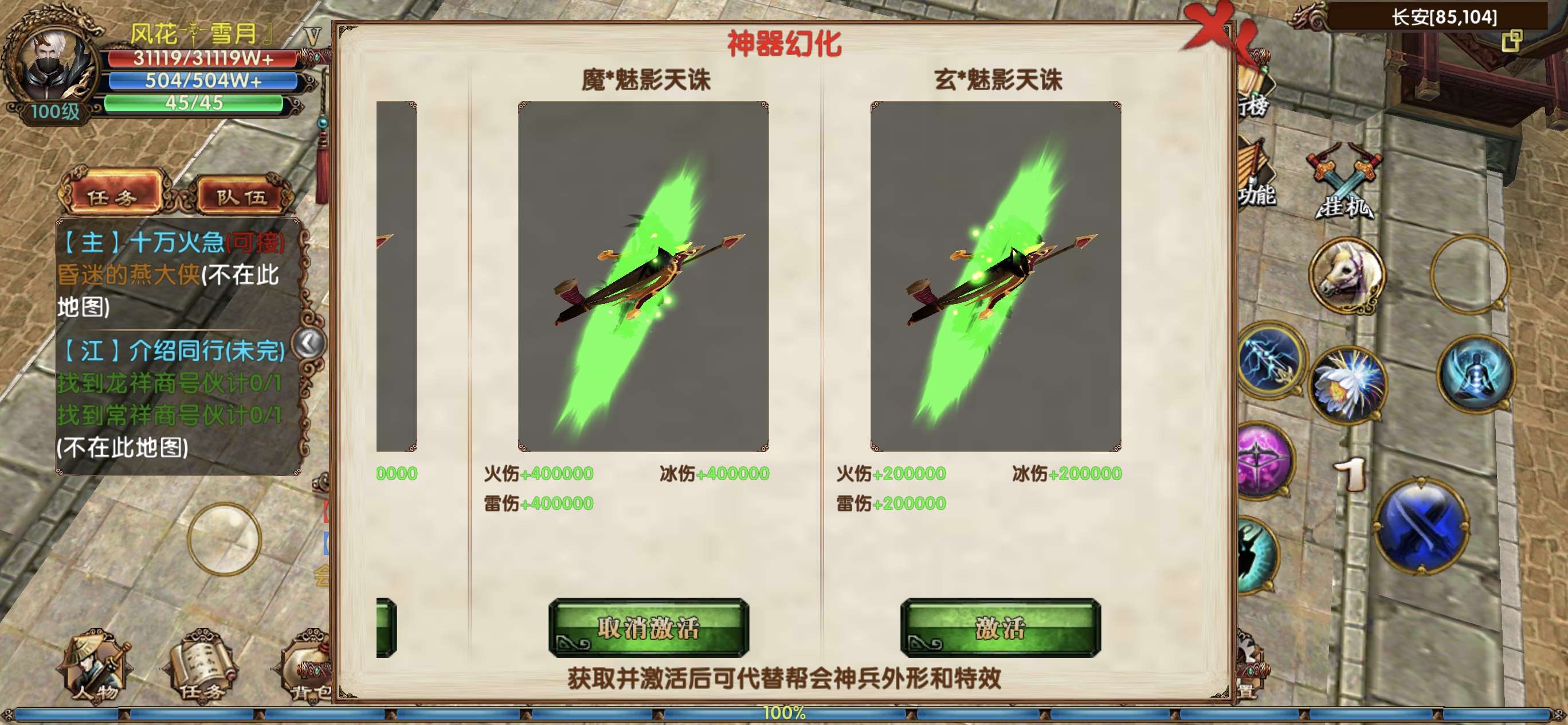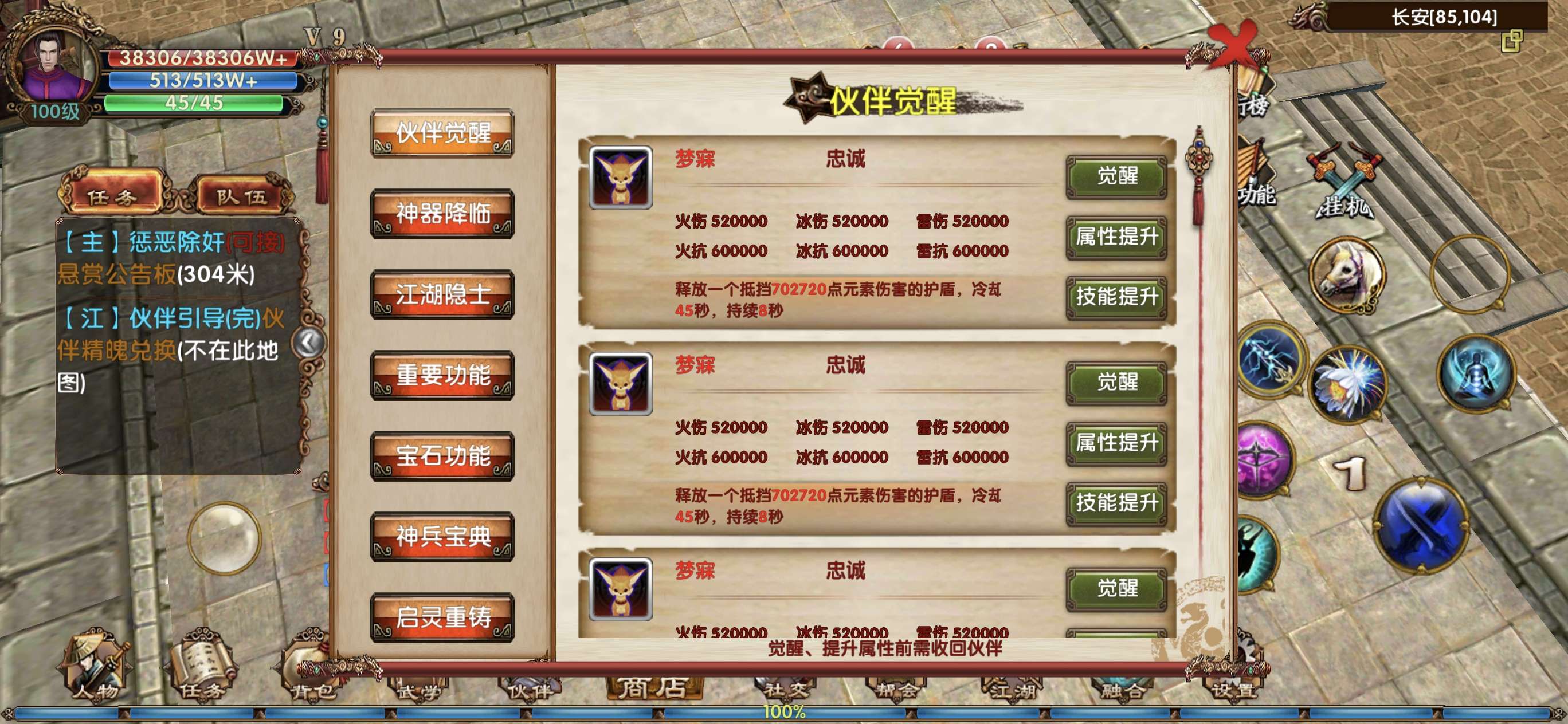 88区v5武当 22高级技能 4张武林转职卡