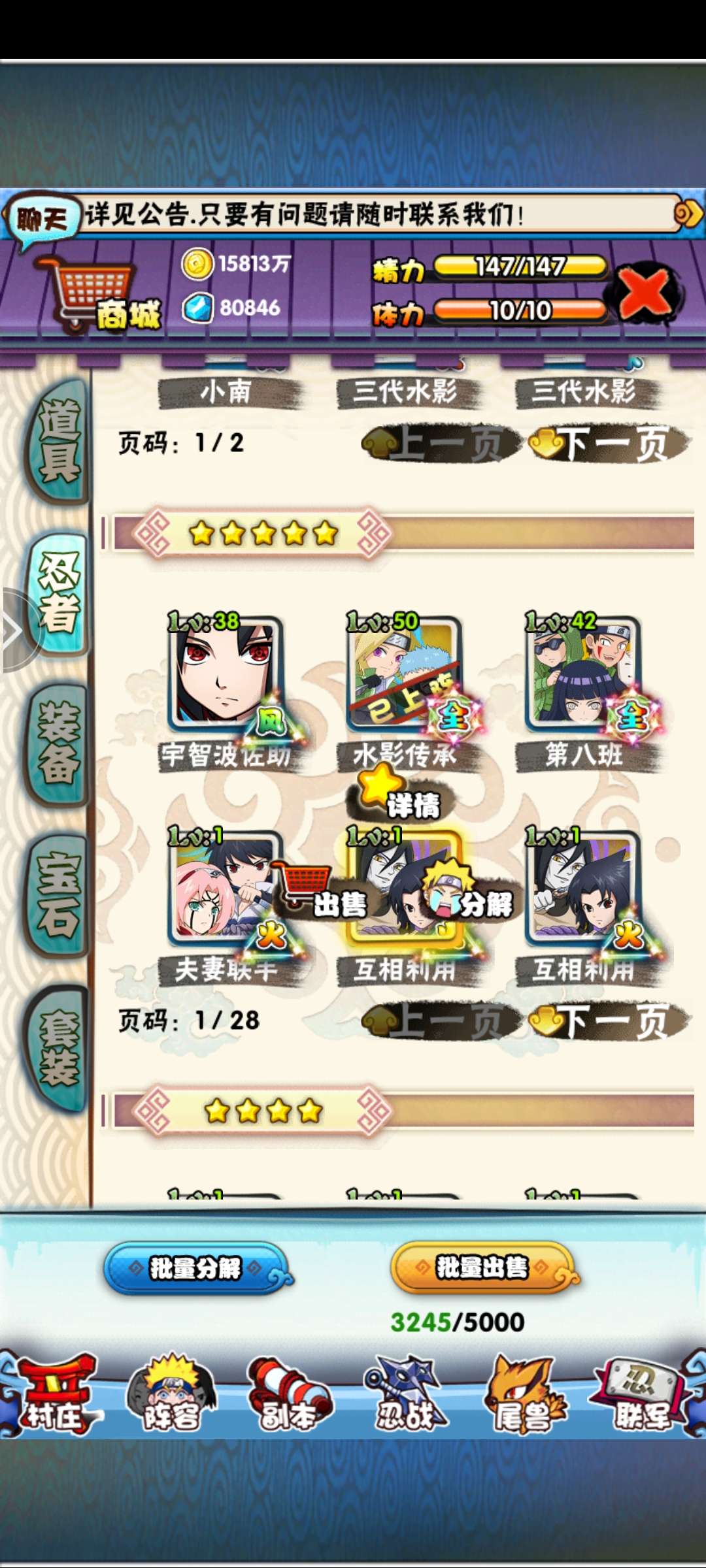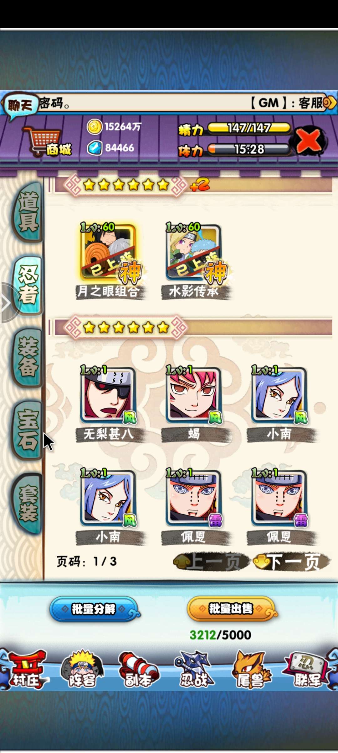 我是火影三区190满级号,V11,资源丰富,便宜大甩卖,买到就是赚到,快来体验吧