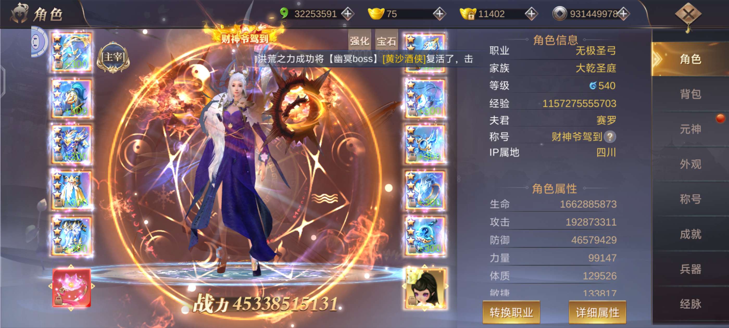 全服无敌,随便砍,吊打800-1000来亿,极品属性,极品养老号,可换绑