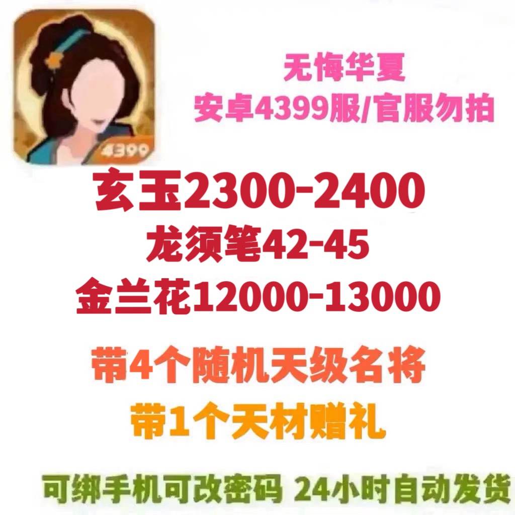 无悔华夏【安卓官方】安卓4399账号2000玄玉32龙须笔9000金兰