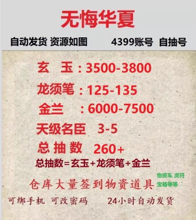 安卓4399服/150抽=2800玄玉+45龙须笔+1妙彩将+2-3橙将+文物谋略