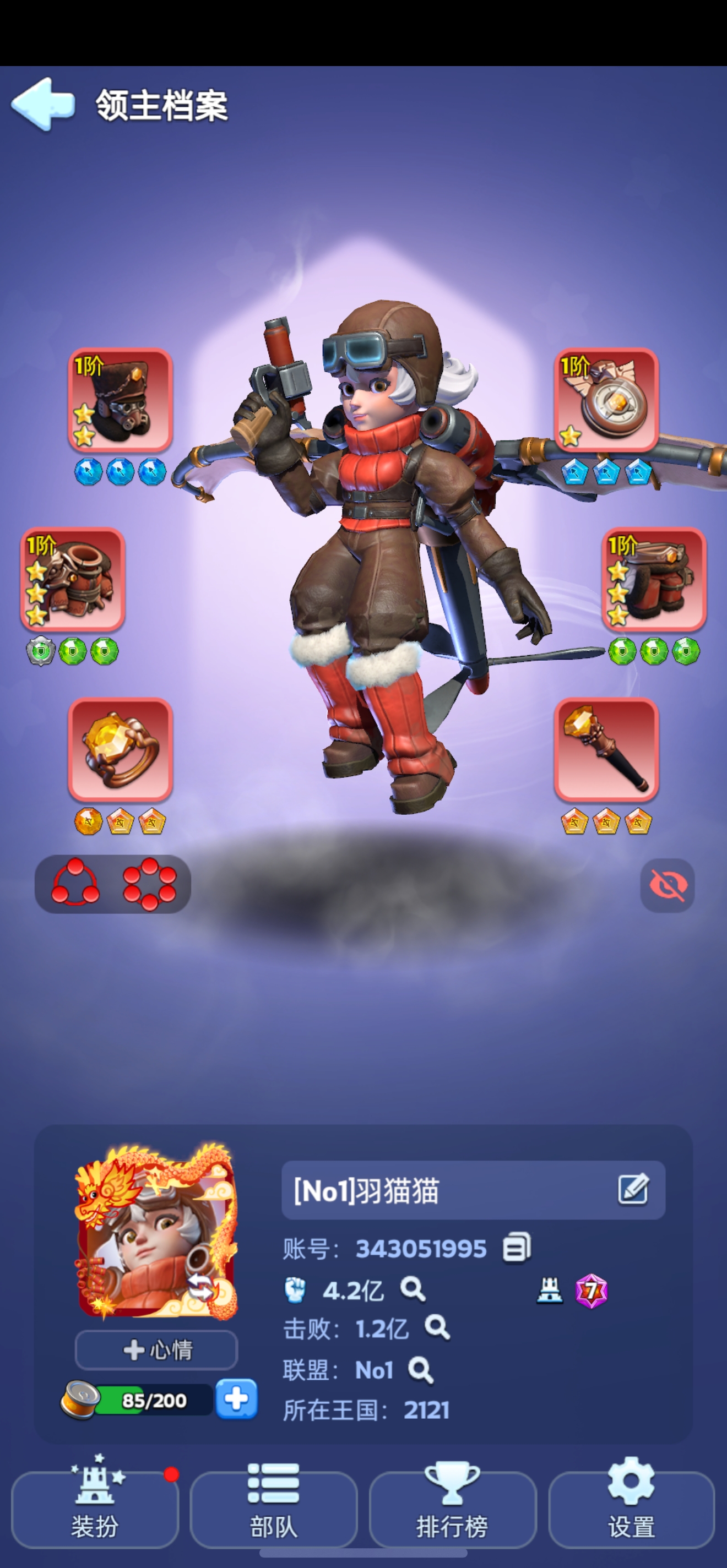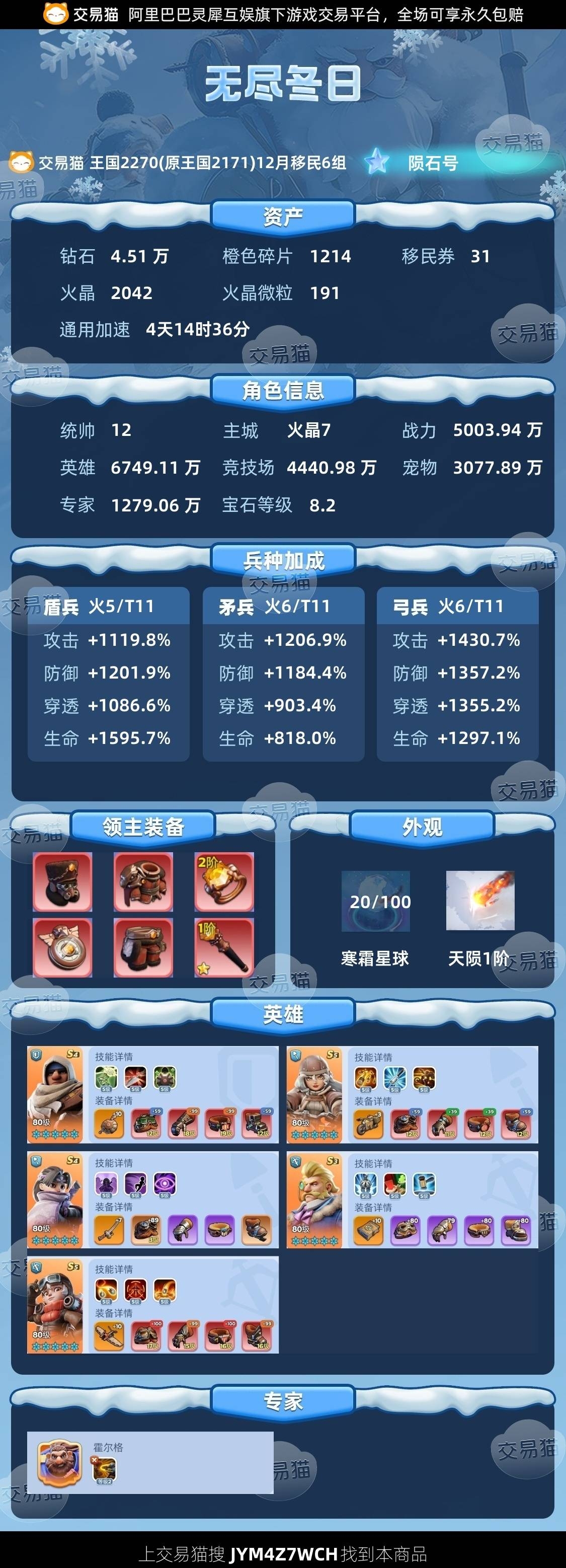 无尽冬日安卓成品号,英雄全80级,装备皮肤都有,打熊6000W,击败4300多万,账号安全,