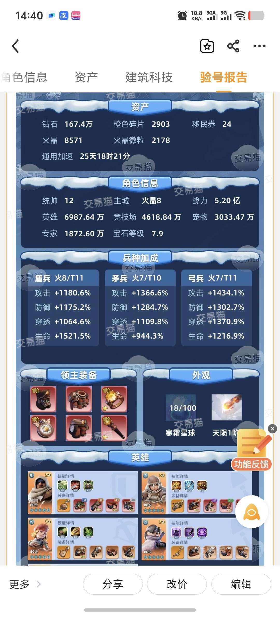 统帅12精品陨石号,兵营建筑全部火9,海岛12+竞技场3900+2组t11,最后一组t11还差一点