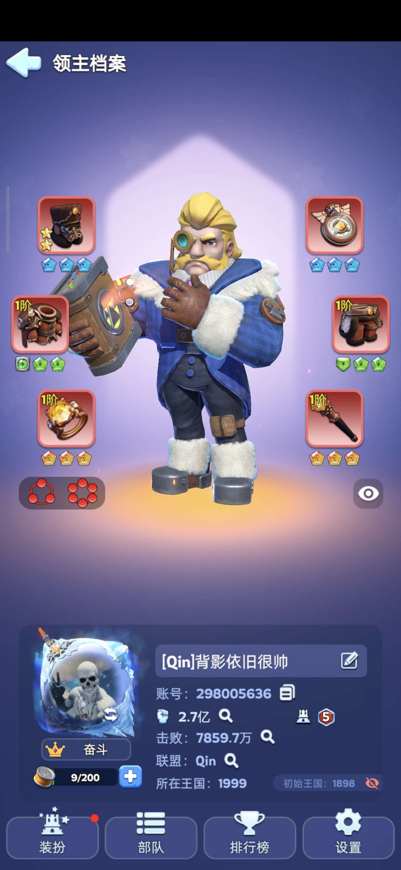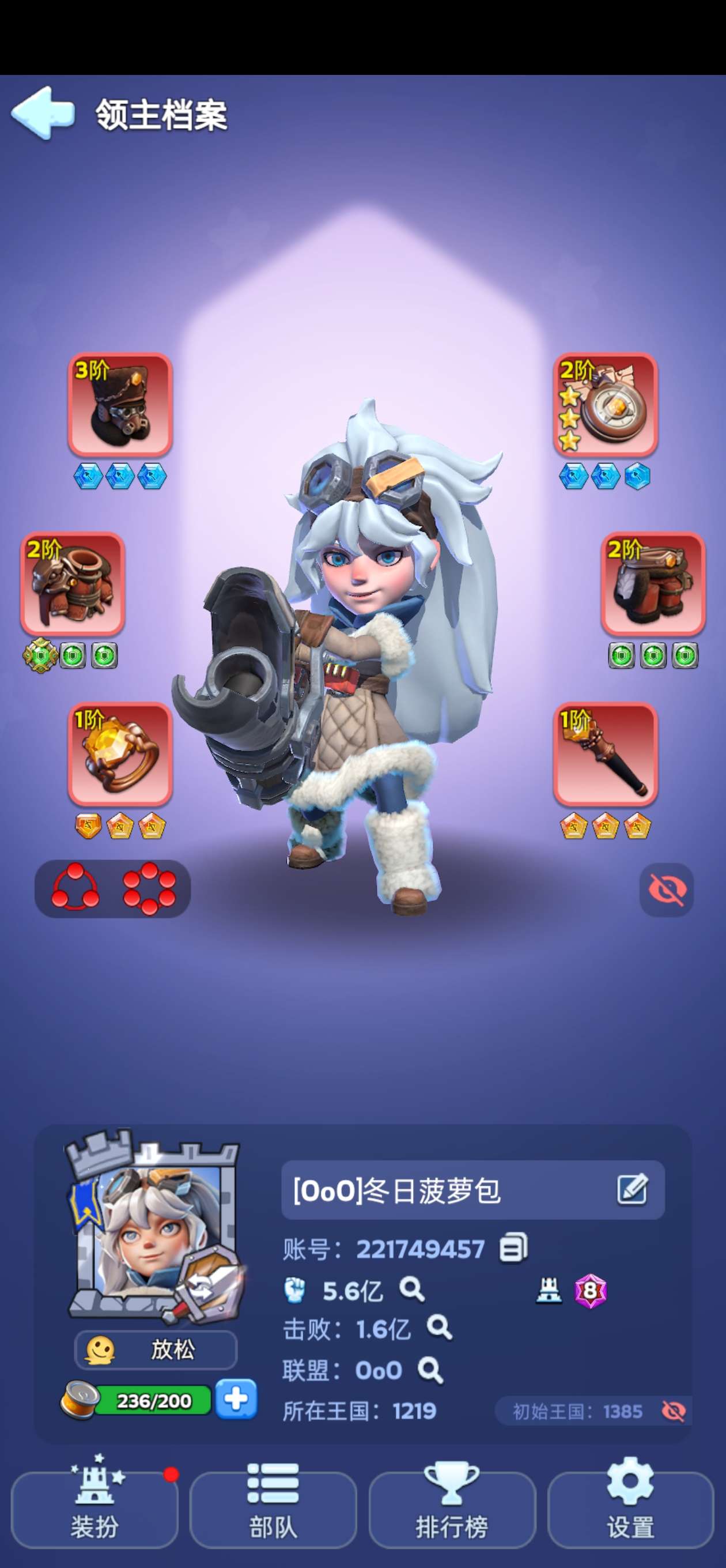 尽冬日账号,统帅10,火8,弓T11,盾8,矛7,,资源多,加速道具全,背包材料丰富,账号安全可解绑