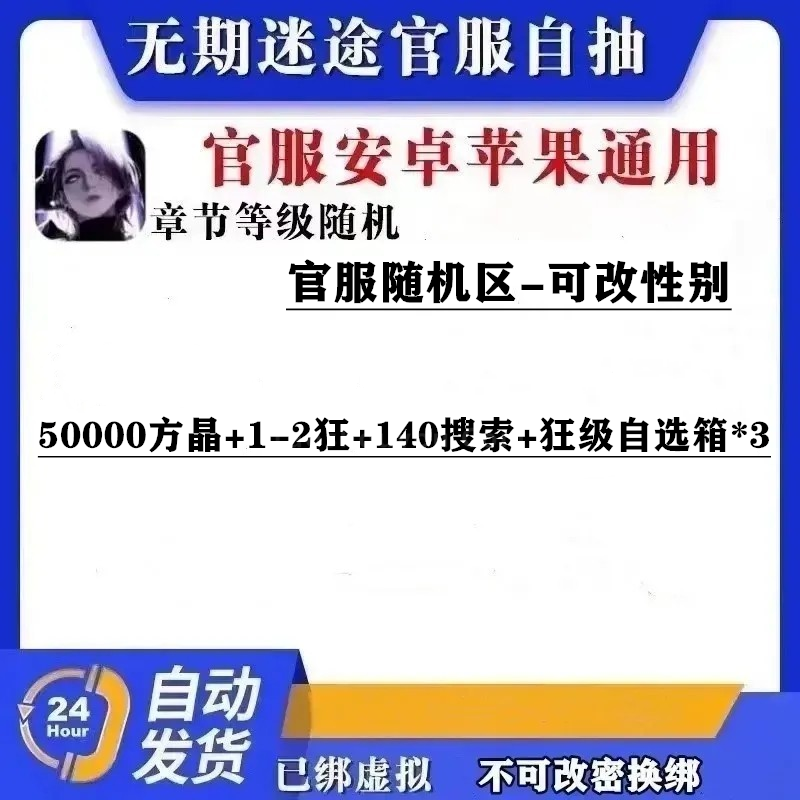 50000方晶+1-2狂+140搜索+狂级自选箱*3-官服随机区-可改性别