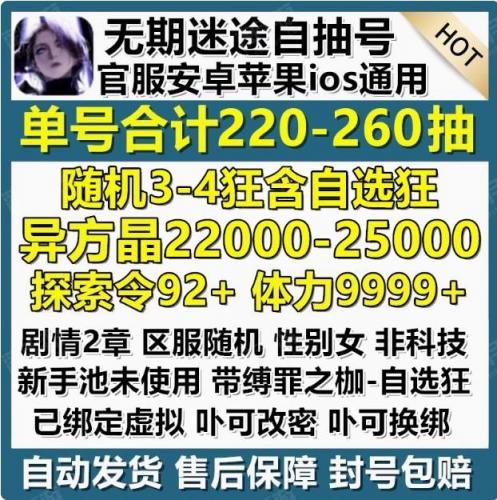 单号保底220-210抽,其中异方晶30000-27000,探索令60-50,死绑手机