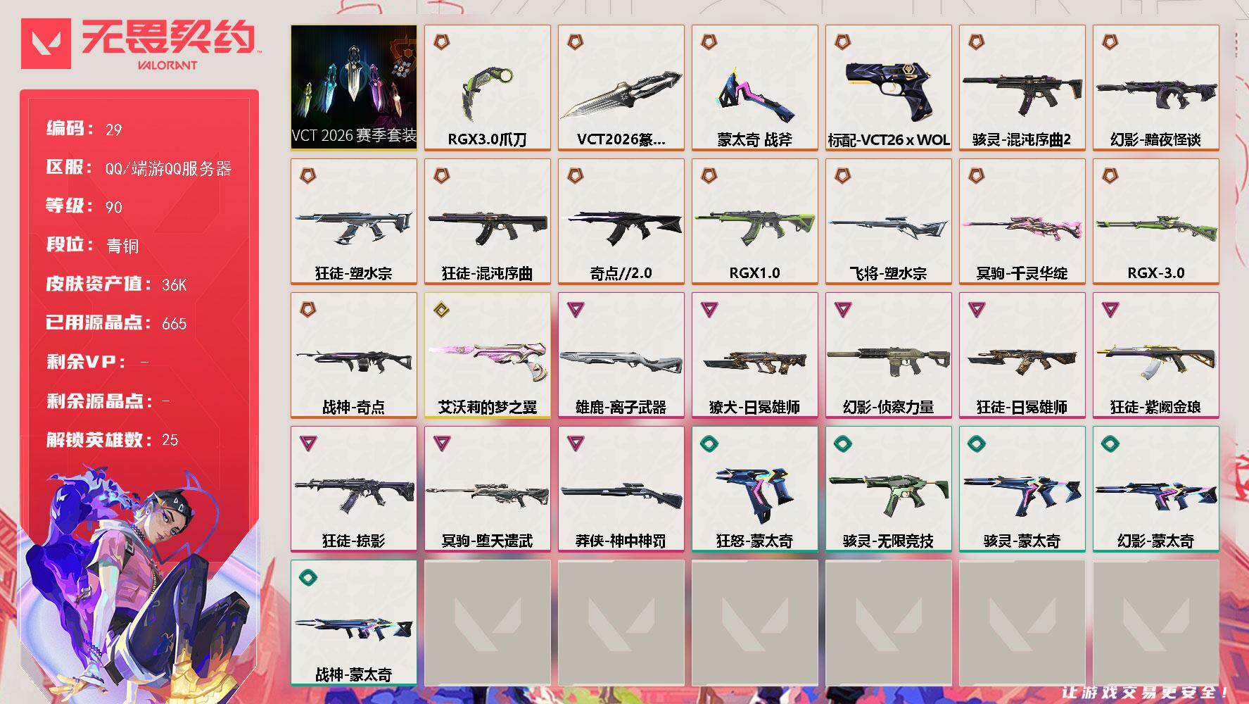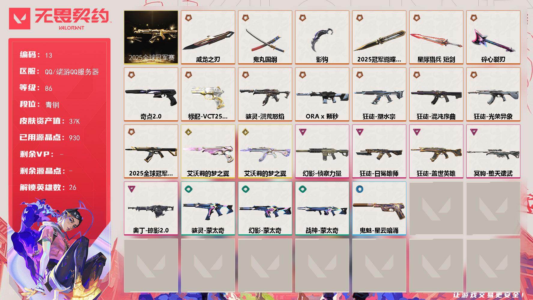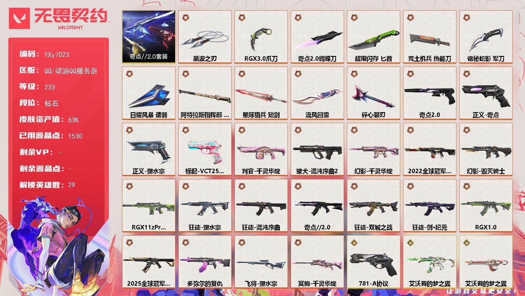 无畏契约Q区端游账号 价值35680 皮肤多 炸鱼封禁30天