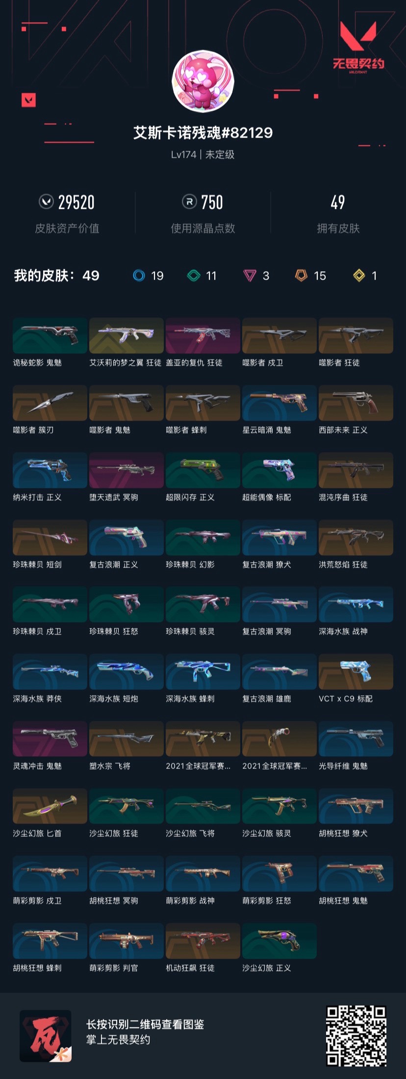 终极*2/卓越*3/皮肤*15/等级*29/段位:黑铁
