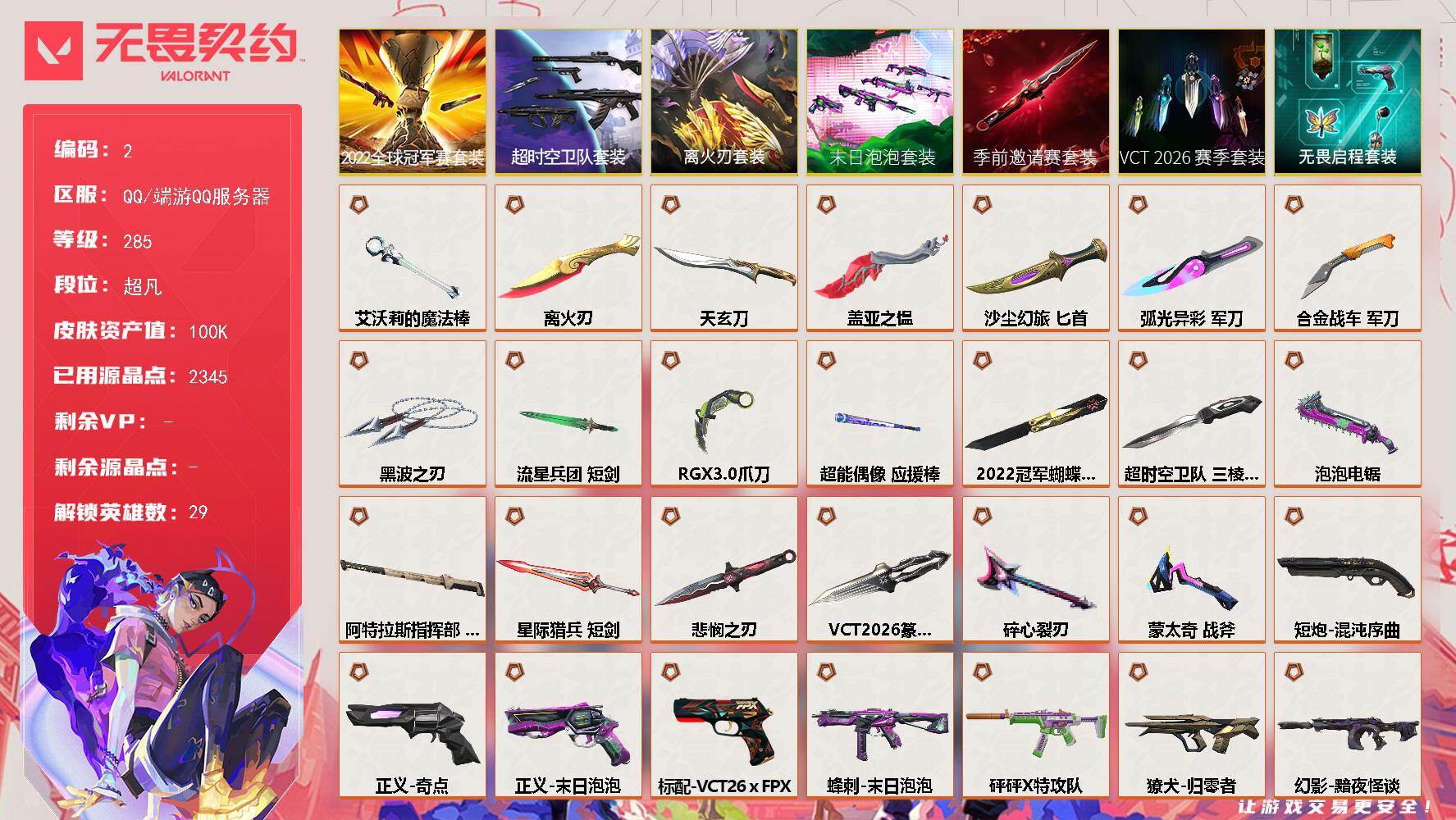 【套装】:2022全球冠军赛套装,超时空卫队套装,VCT 2026 赛季套装,