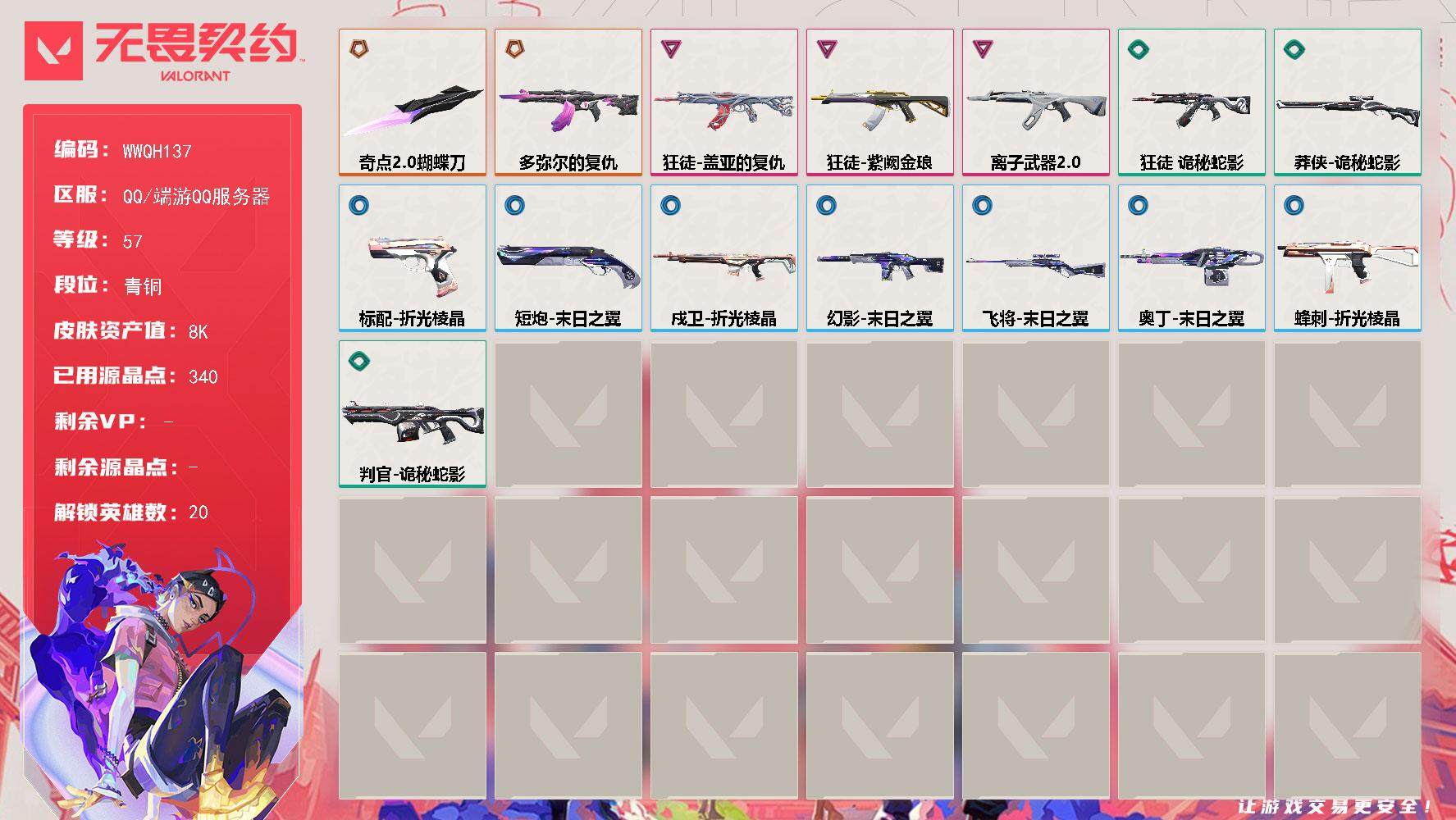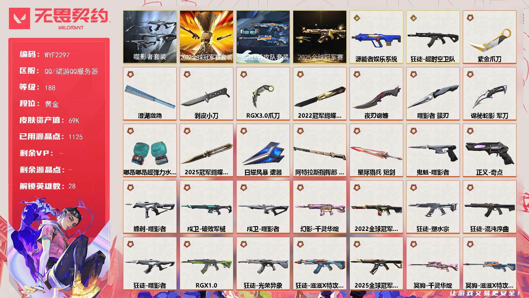 总资产39240 虚空遗器套装 神中神罚套装 22冠军套 25狂徒 混沌狂徒 侦察幻影 堕天冥驹 剥皮小刀 奇点蝴蝶刀