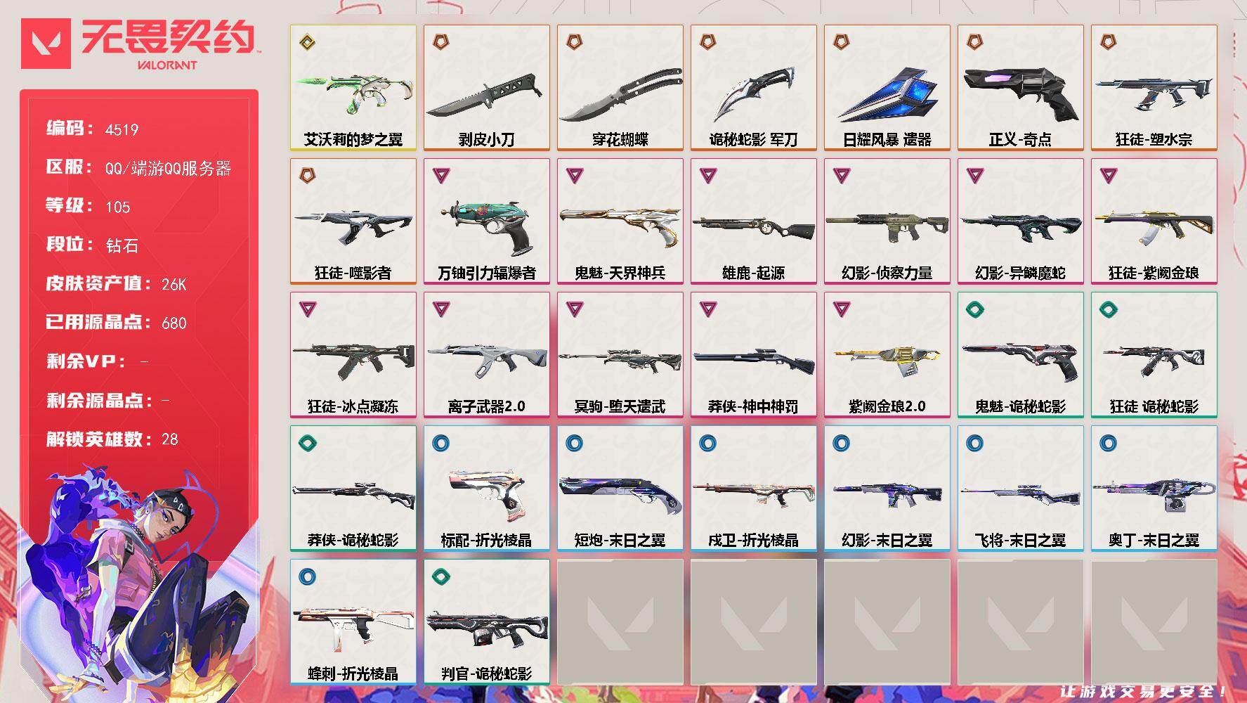 7橙皮 5紫皮 26皮肤 28英雄 53卡面 525已用源晶 铂金段位