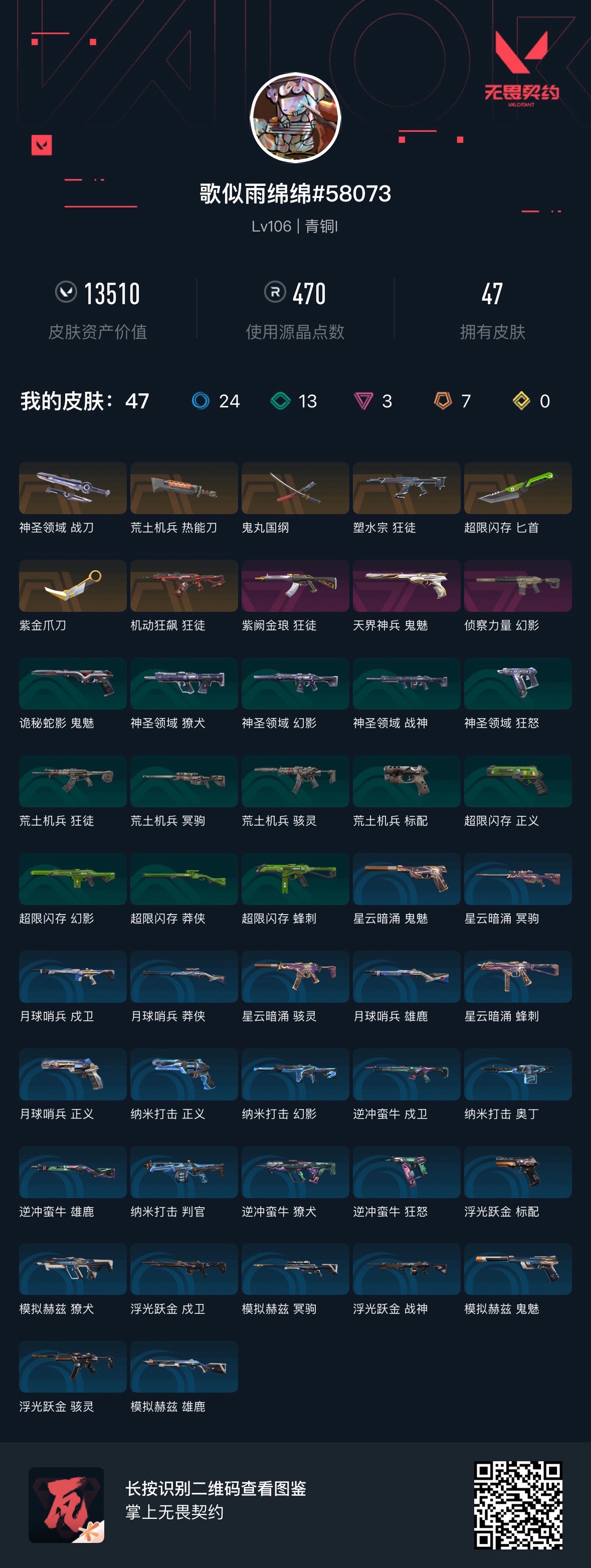 终极*11/卓越*3/皮肤*39/等级*108/段位:青铜/