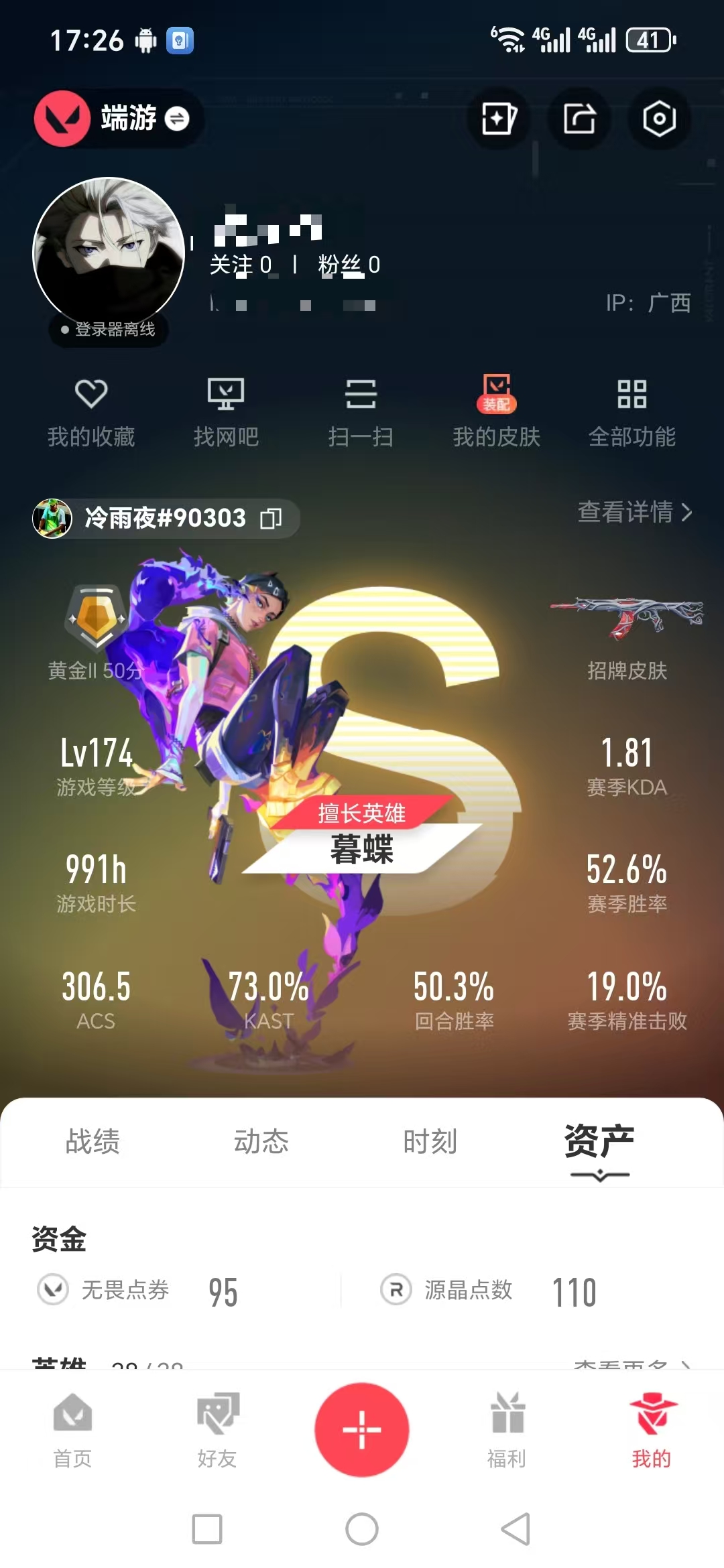 终极*16/卓越*10/皮肤*74/等级*327/段位:白银/