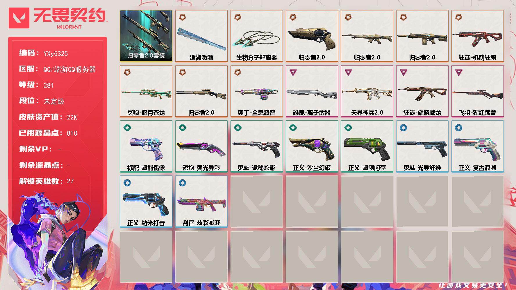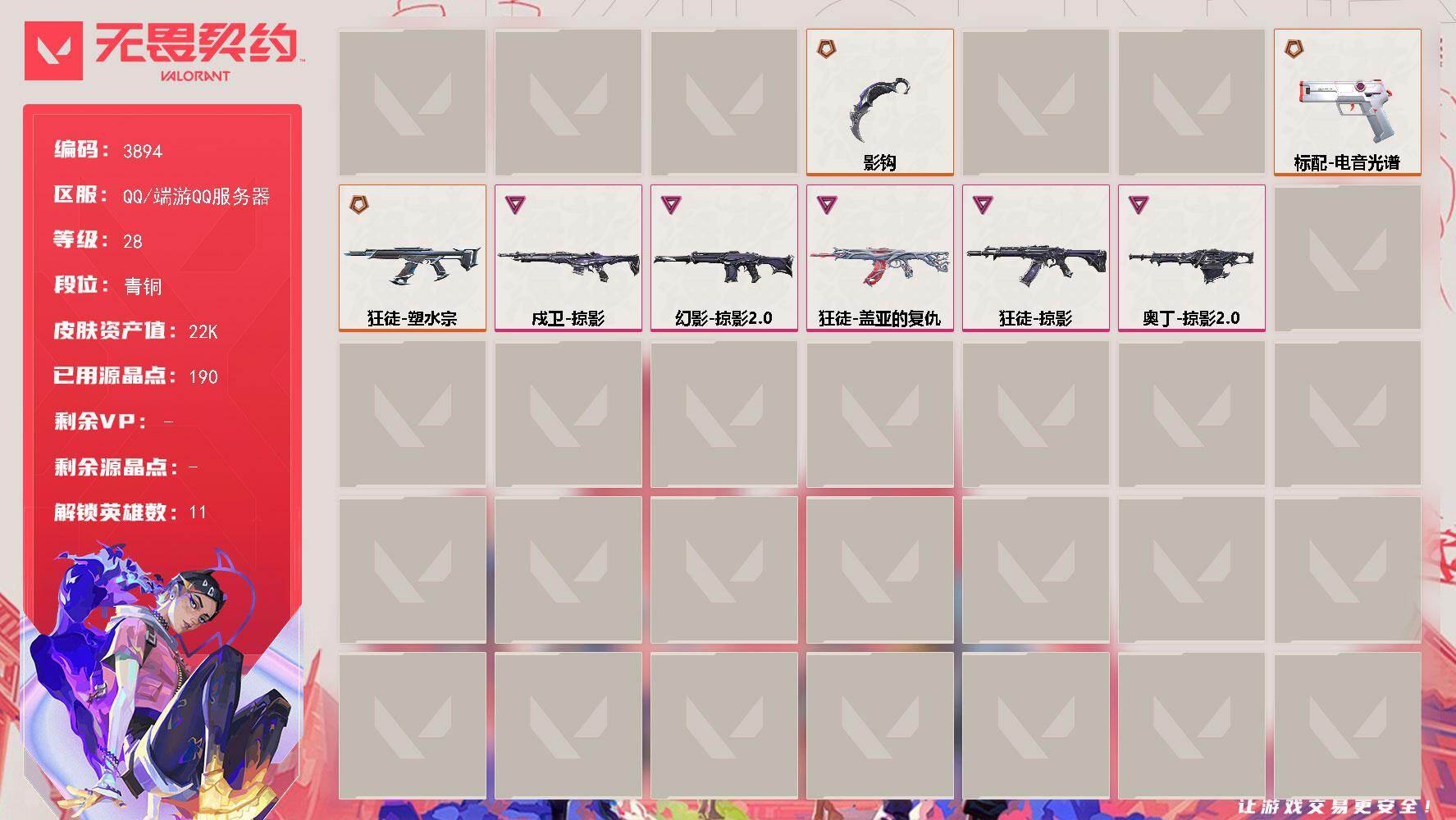 6橙皮 1金皮 2紫皮 22皮肤 14英雄 47卡面 380已用源晶