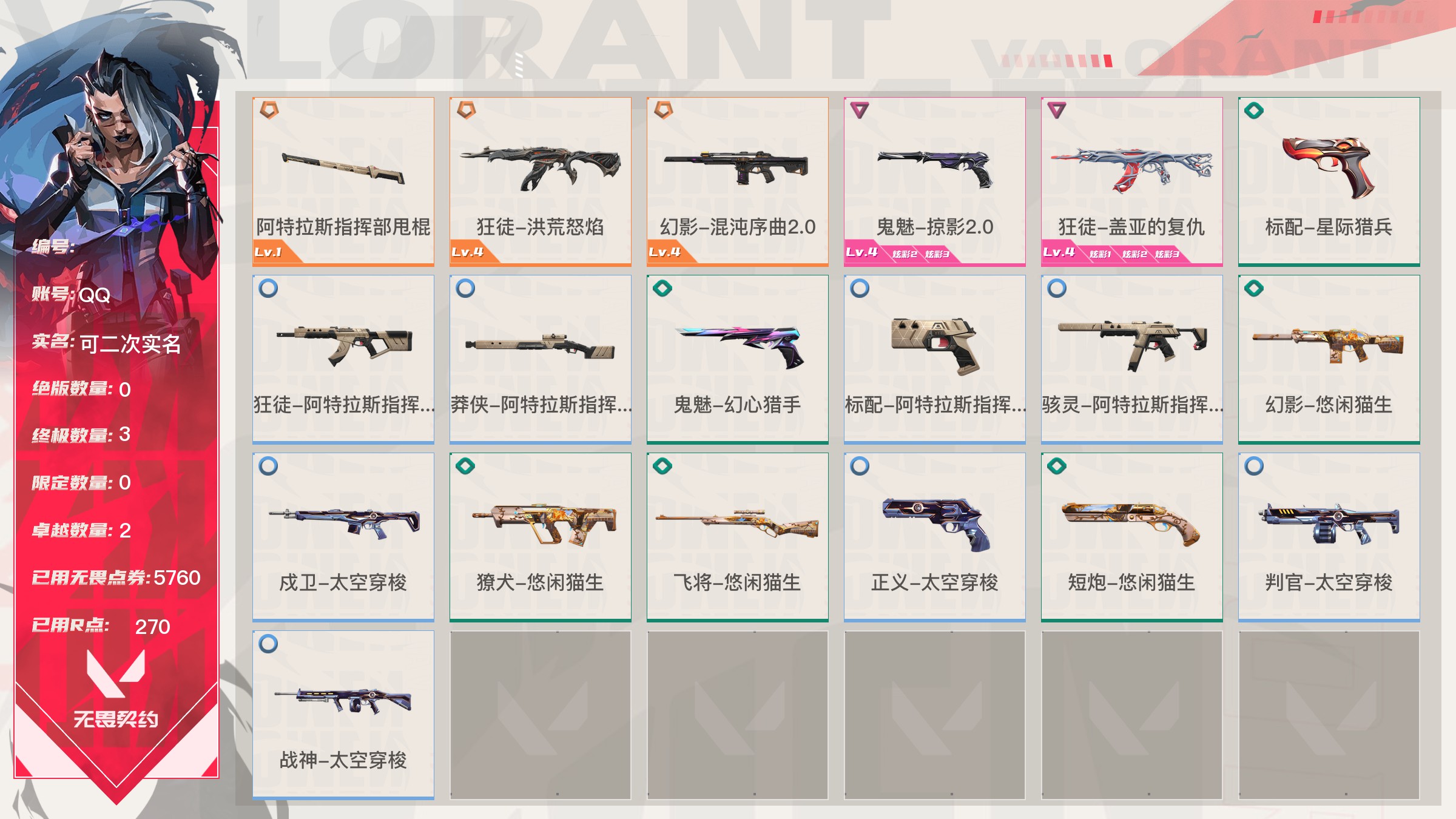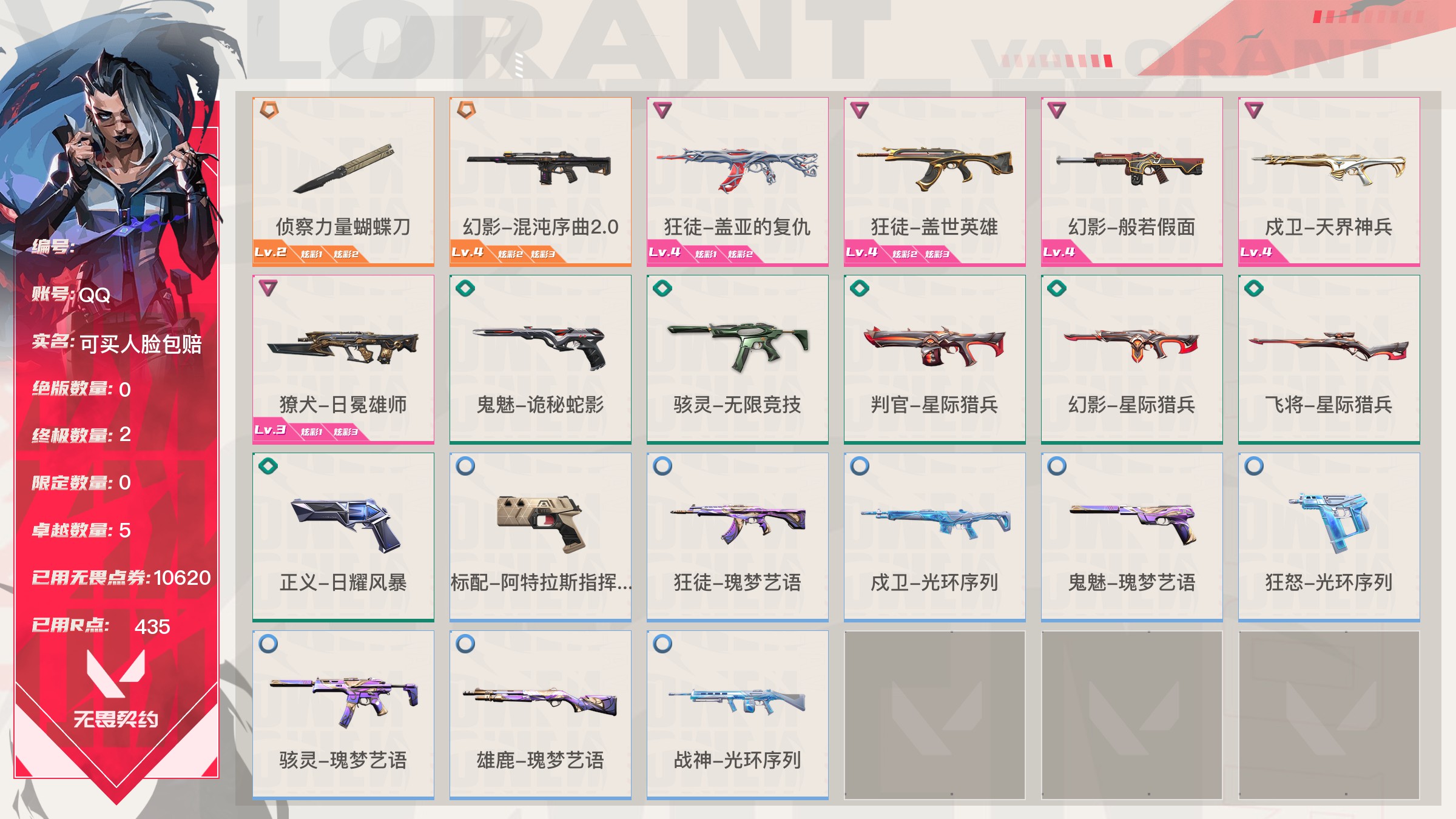 Lv182|未定级, 刀皮数量10,枪皮数量80(绝版5限定2