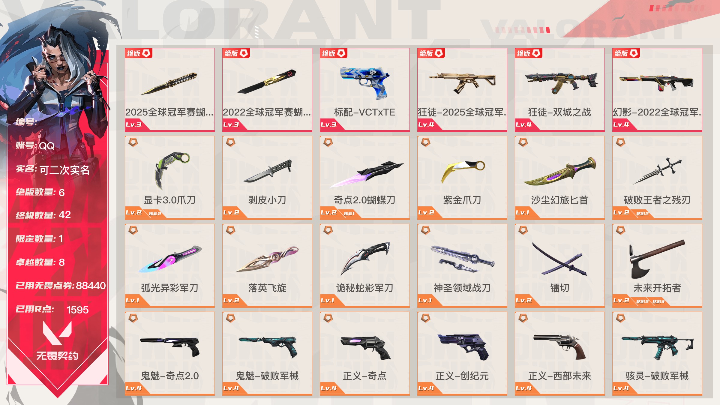 Lv186|铂金II, 刀皮数量11,枪皮数量88(绝版3